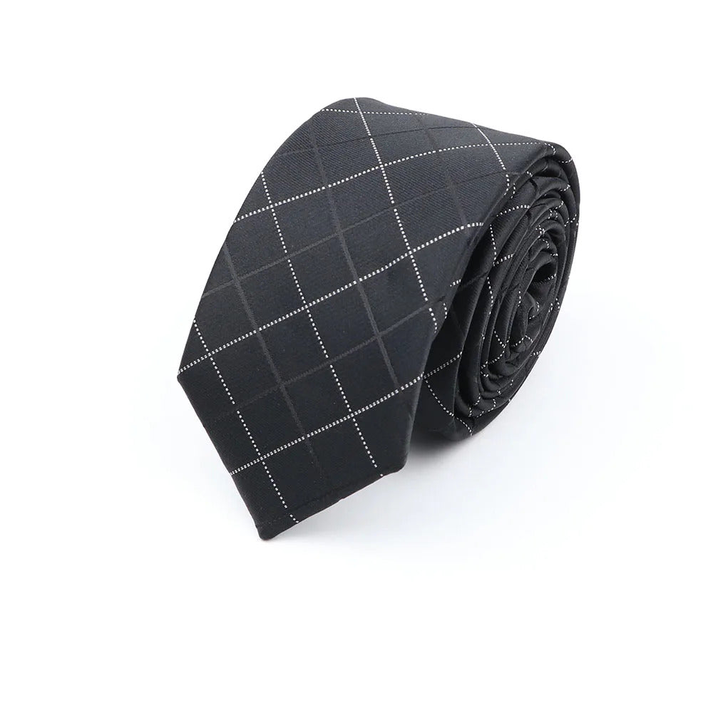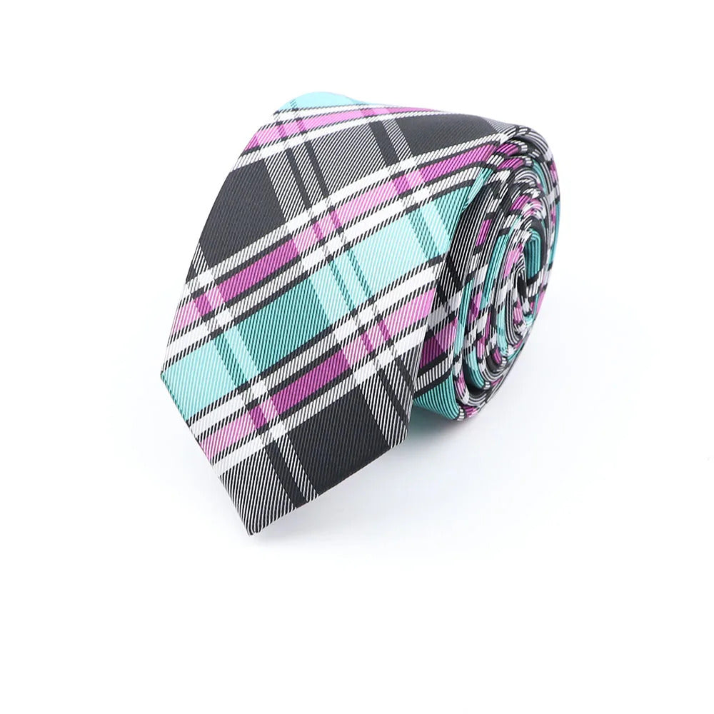 Material: High-quality polyester and silk blendPattern Type: Striped, featuring a classic black, blue, and red plaid jacquard weaveDepartment Name: AdultGender: Suitable for both men and womenTies Type: Neck TieDimensions: Length: 57.08" (145cm), Width: 2.36" (6 cm)**Elegant Design and Versatile Style**The Fashion 6cm Polyester Tie is a quintessential accessory for the modern gentleman or lady. Its classic black, blue, and red plaid pattern is woven into a durable and luxurious polyester and silk blend, ensuring a touch of elegance and sophistication for any formal occasion. Whether you're attending a business meeting, a wedding, or any other formal event, this tie will complement your attire and elevate your overall look.**Durable and Easy to Maintain**Crafted with longevity in mind, this tie is designed to withstand the rigors of frequent wear. The high-quality polyester material is resistant to wrinkles, making it a practical choice for the busy professional. Despite its durability, the tie remains lightweight, ensuring comfort throughout the day. Moreover, it is easy to maintain, with a simple care routine that includes avoiding bleach and dry cleaning, and machine washing is not recommended.**Adaptable and Accessible**The Fashion 6cm Polyester Tie is a versatile accessory that transcends gender and occasion. With its classic striped pattern and timeless design, it is suitable for a wide range of formal settings, from business meetings to weddings. The tie's dimensions, with a length of 57.08 inches and a width of 2.36 inches, ensure a perfect fit for most individuals. The tie's adaptability and accessibility make it an excellent addition to any formal wardrobe, catering to both men and women who value style and functionality.