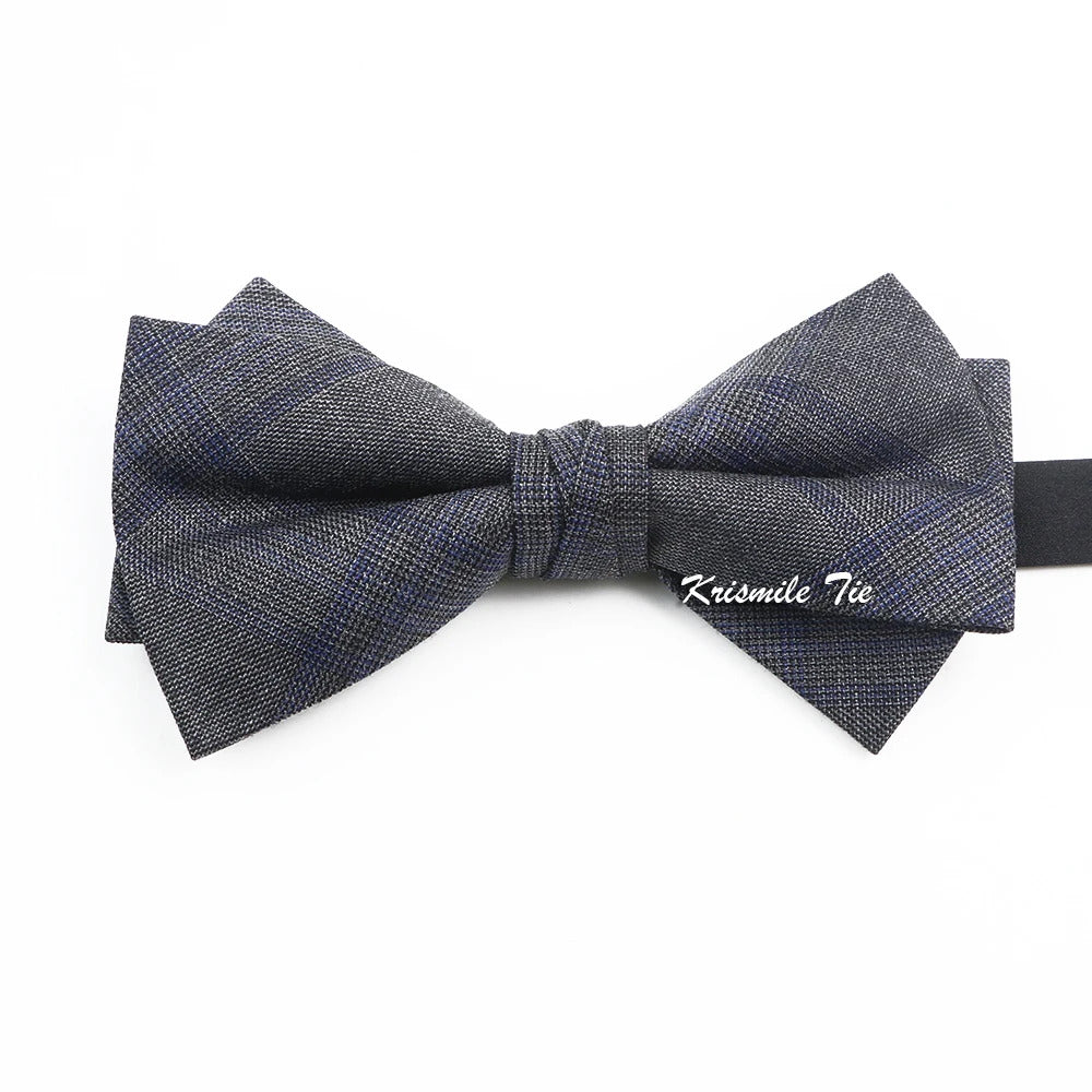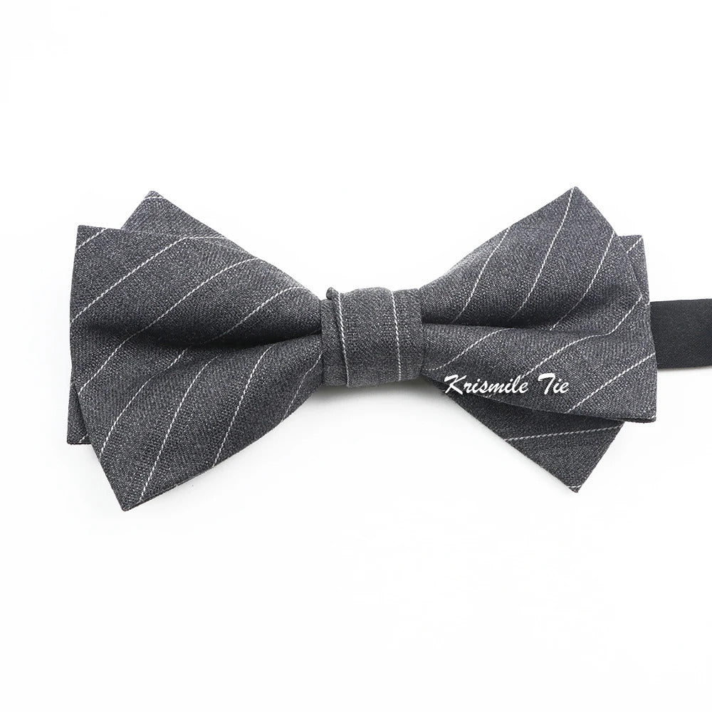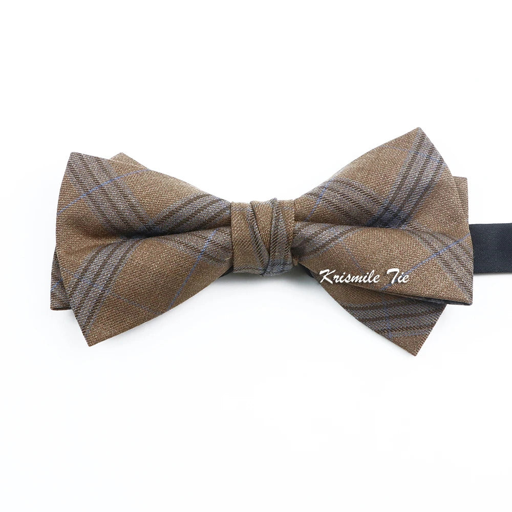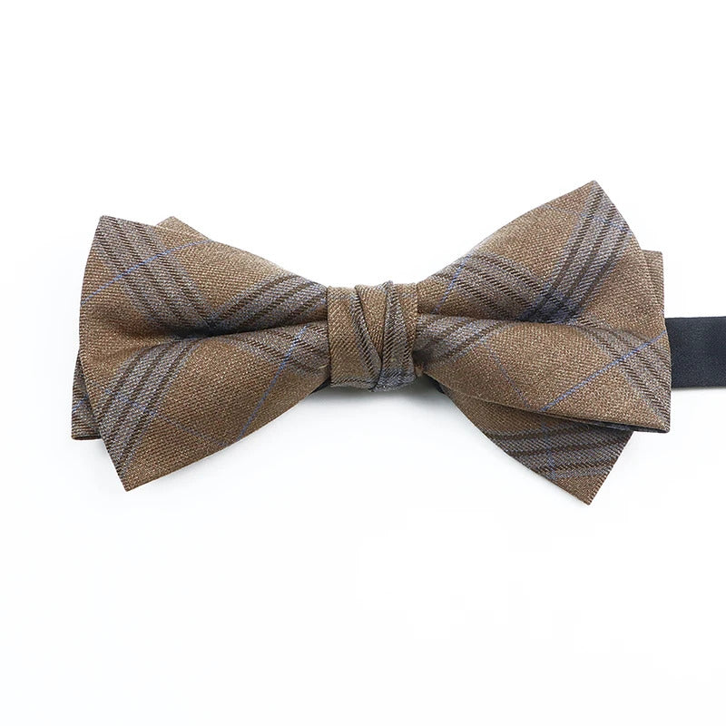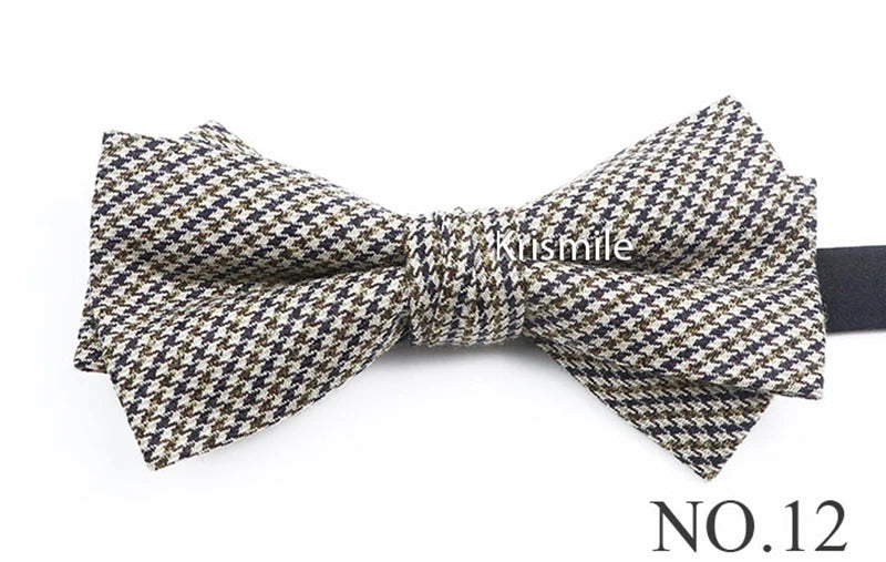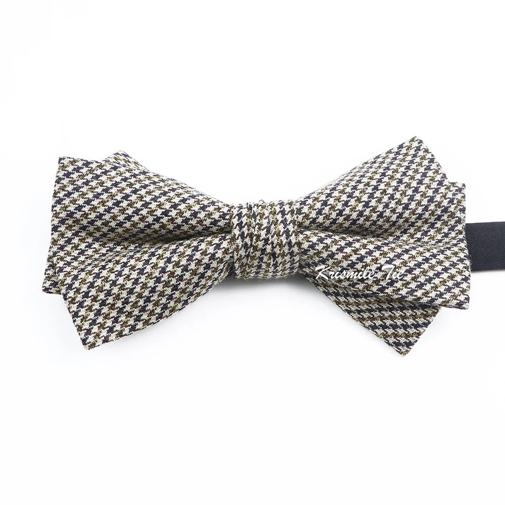 领带男Fashion Design Mens Wool Bowties High Quality Grey Khaki Striped Plaid Handmade Butterfly For Wedding Party Dinner Cravat Gift