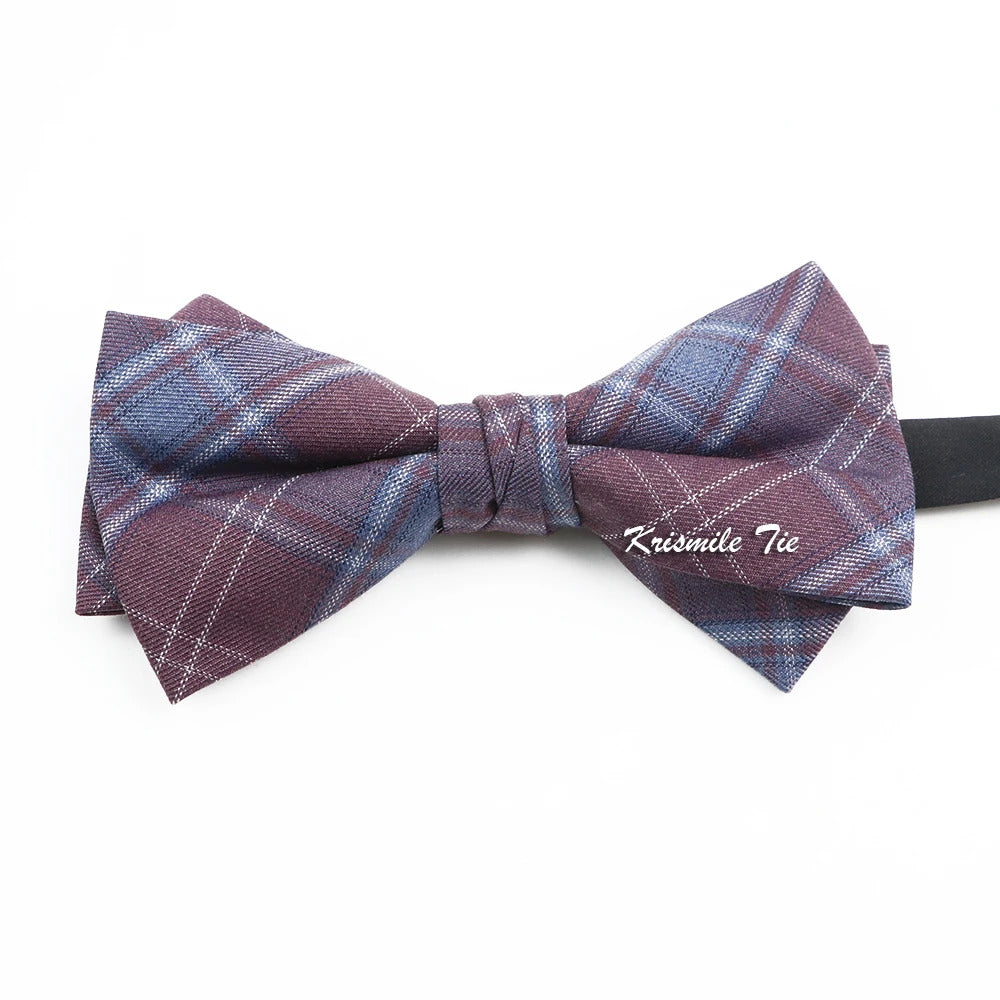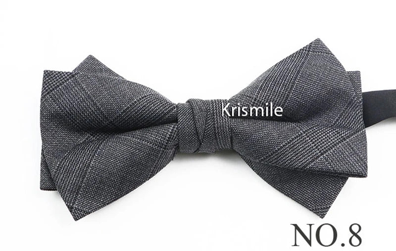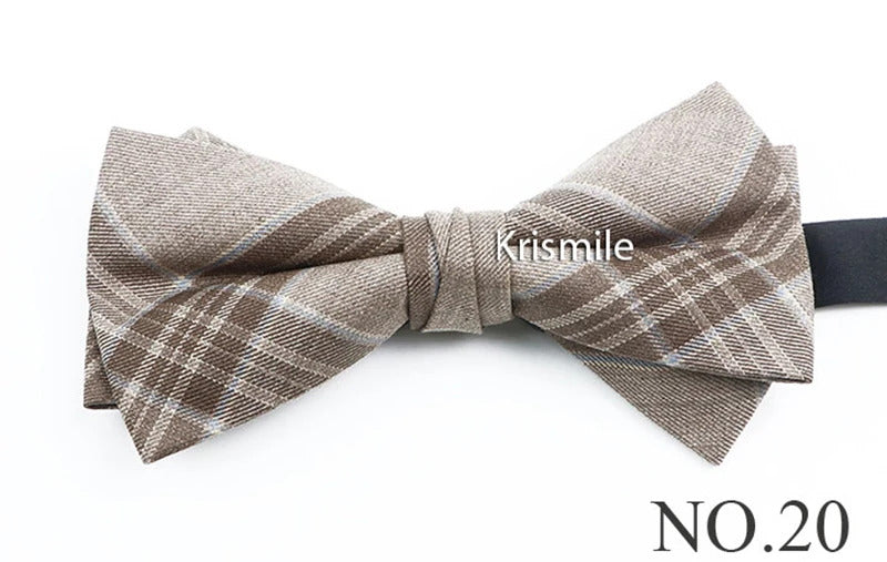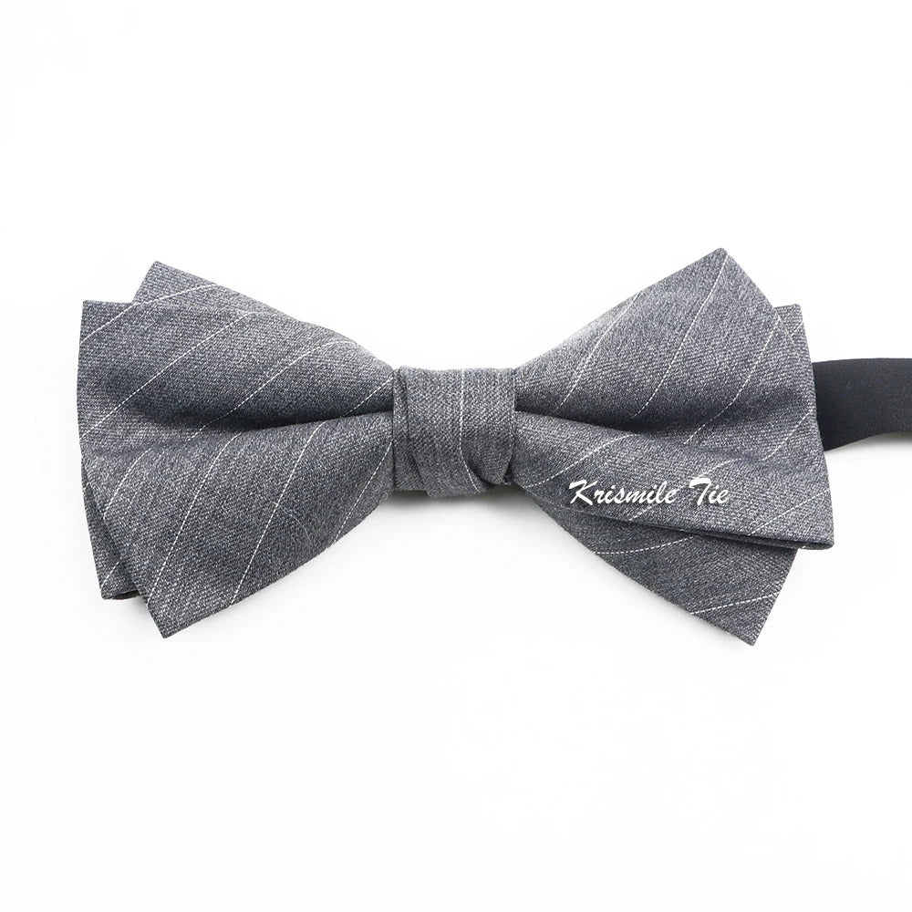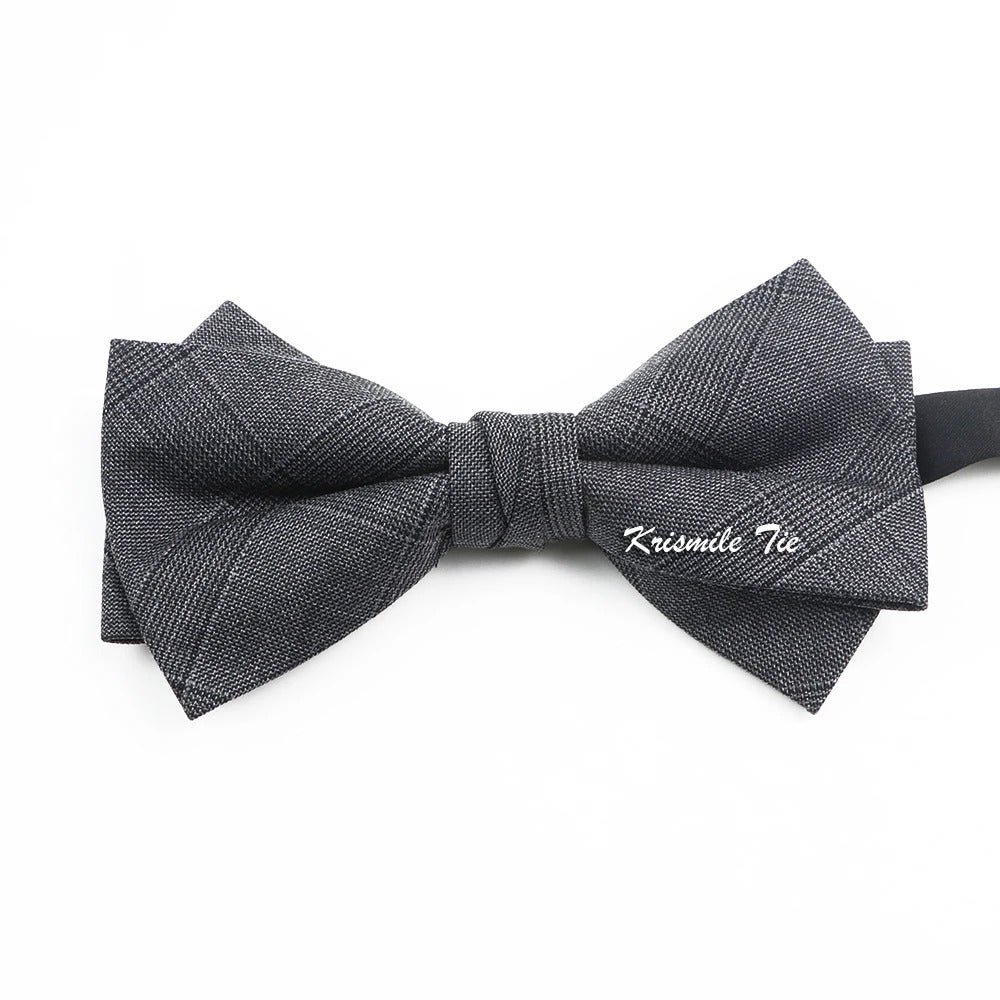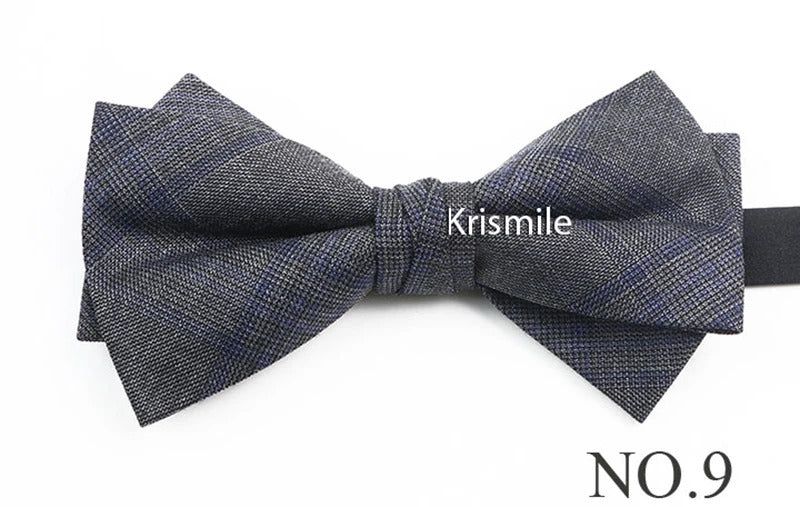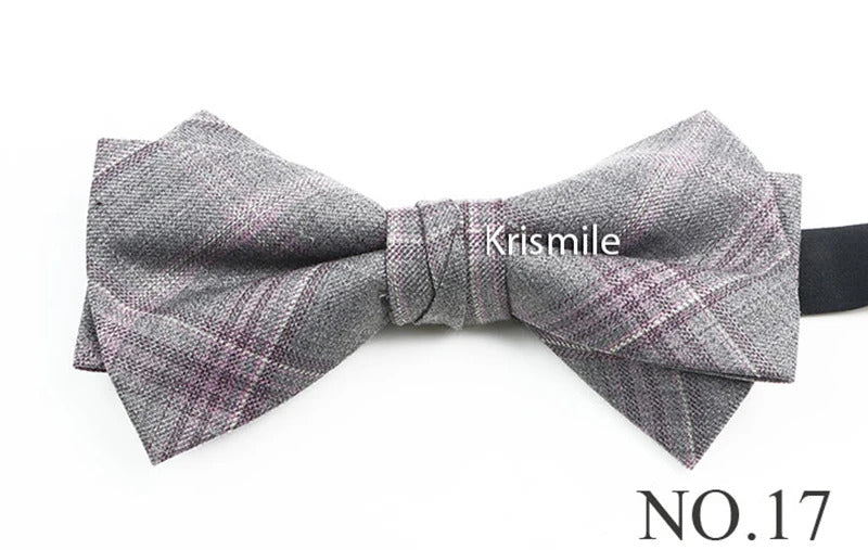 领带男Fashion Design Mens Wool Bowties High Quality Grey Khaki Striped Plaid Handmade Butterfly For Wedding Party Dinner Cravat Gift