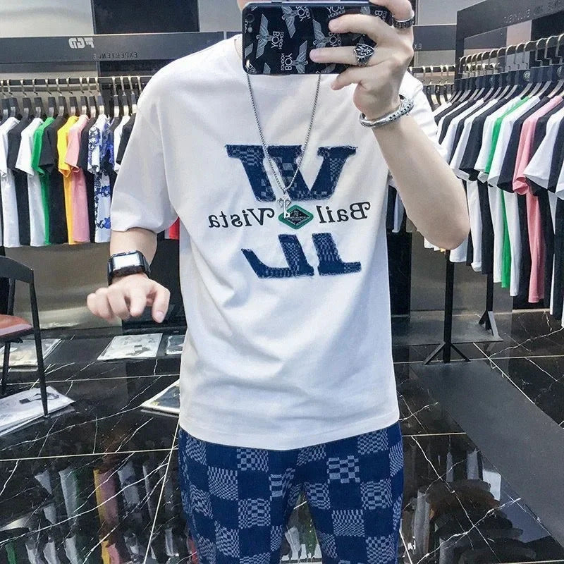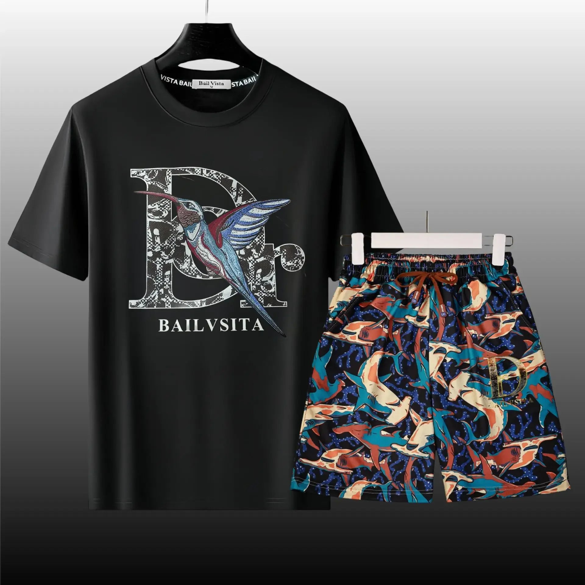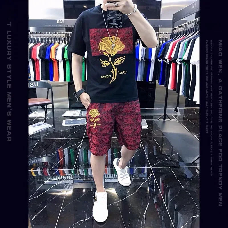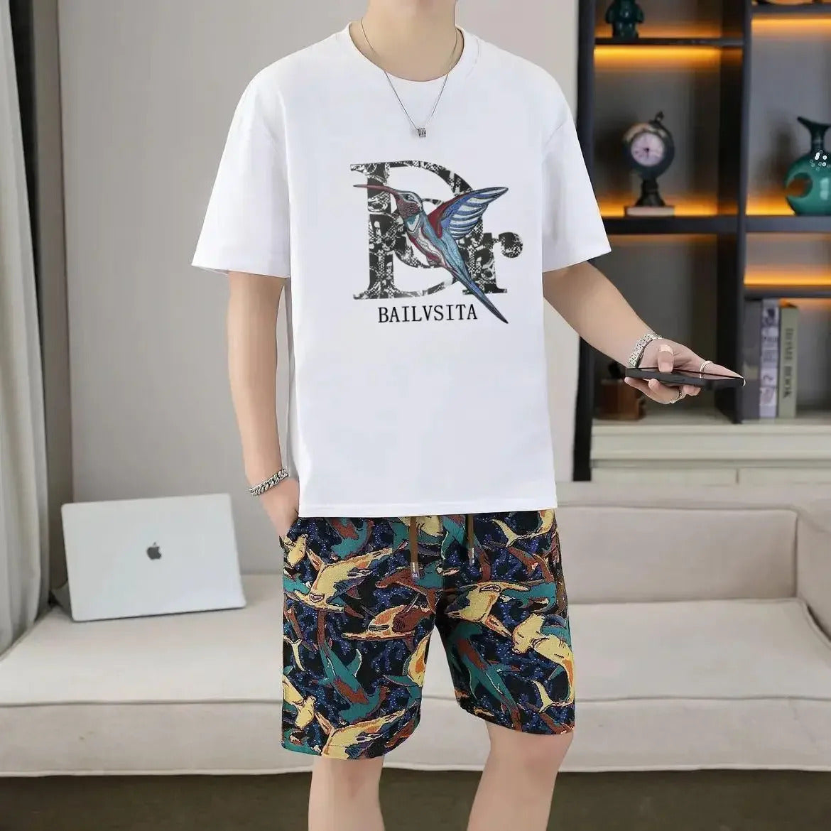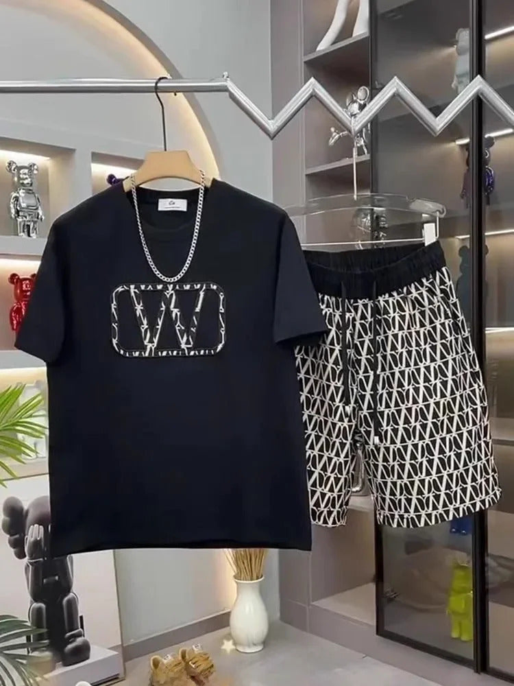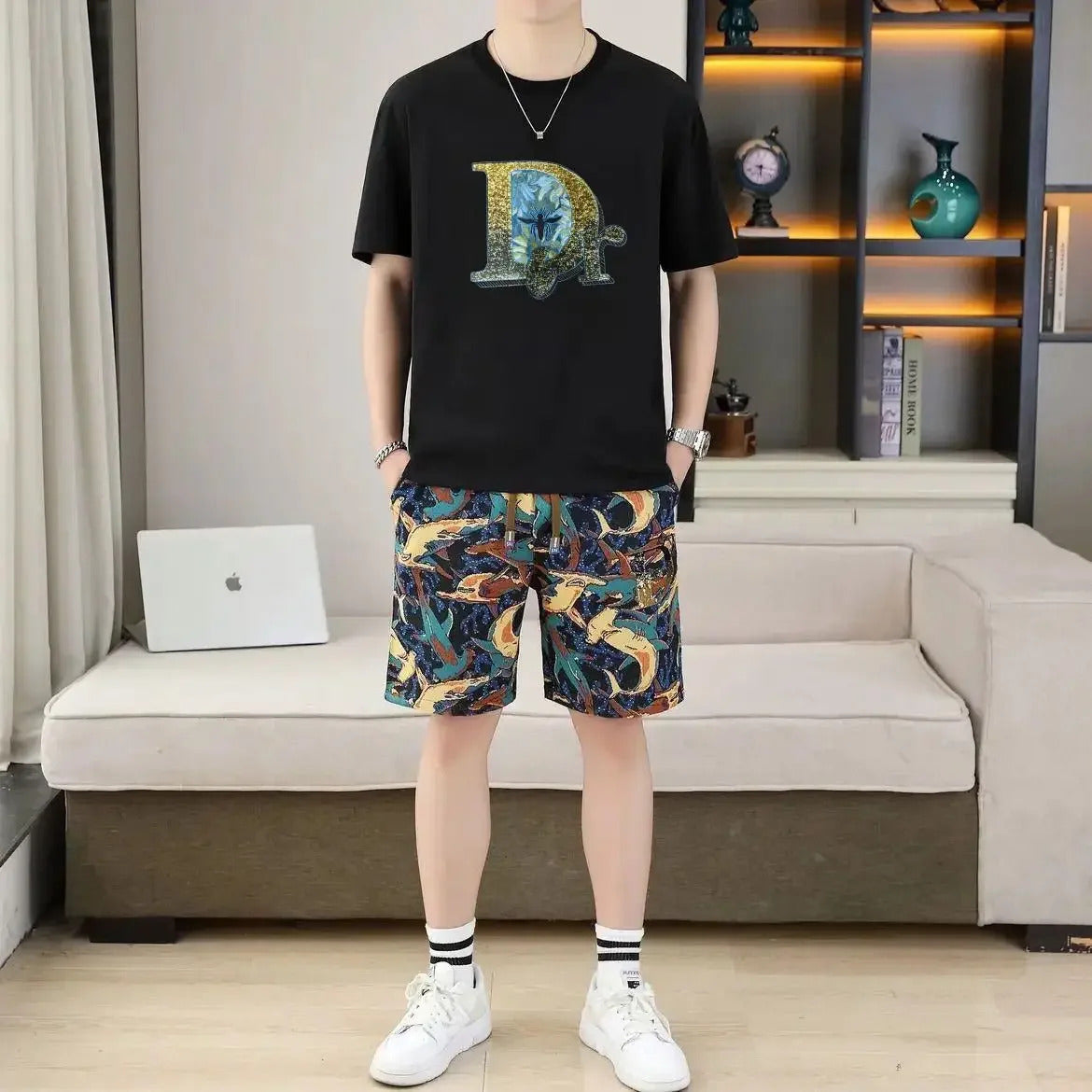 男士套装Fashionable Casual Men's Short Sleeve Suits European Station Summer New Arrival Luxury Unique Printing Men's Clothing Set