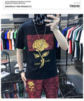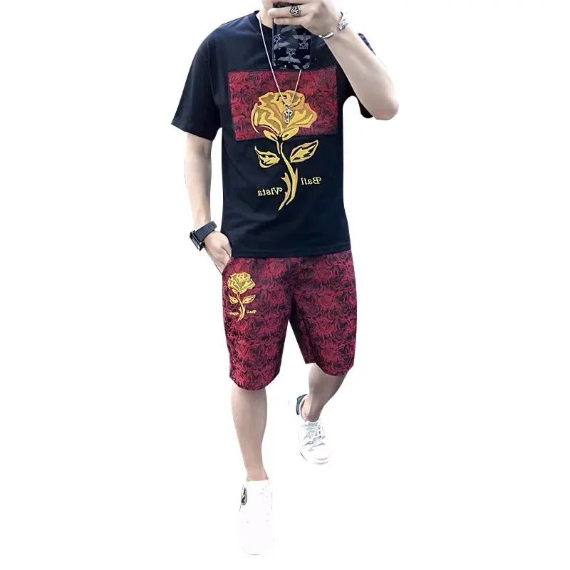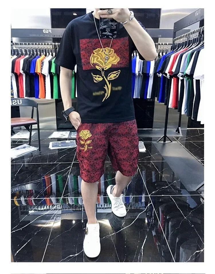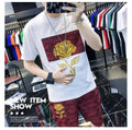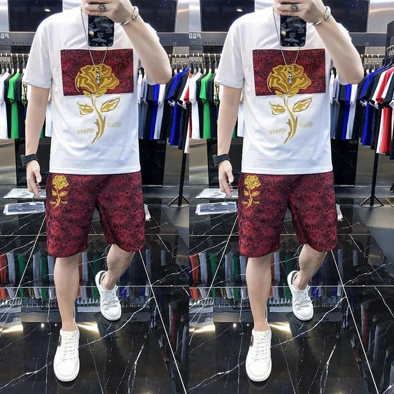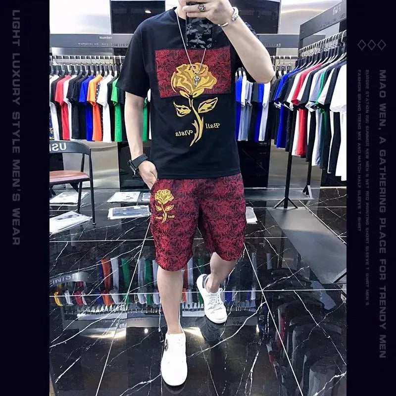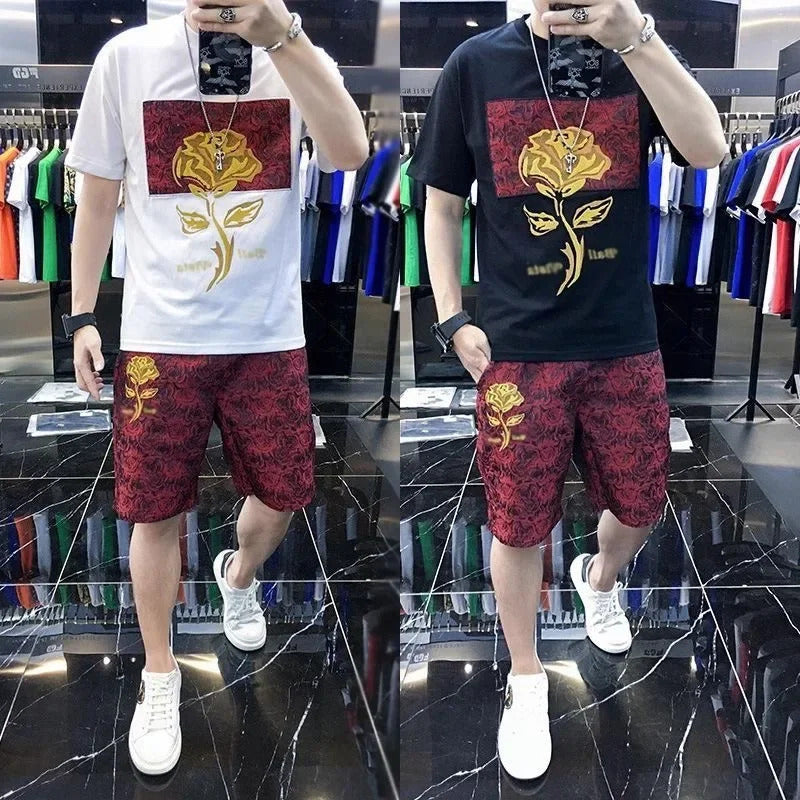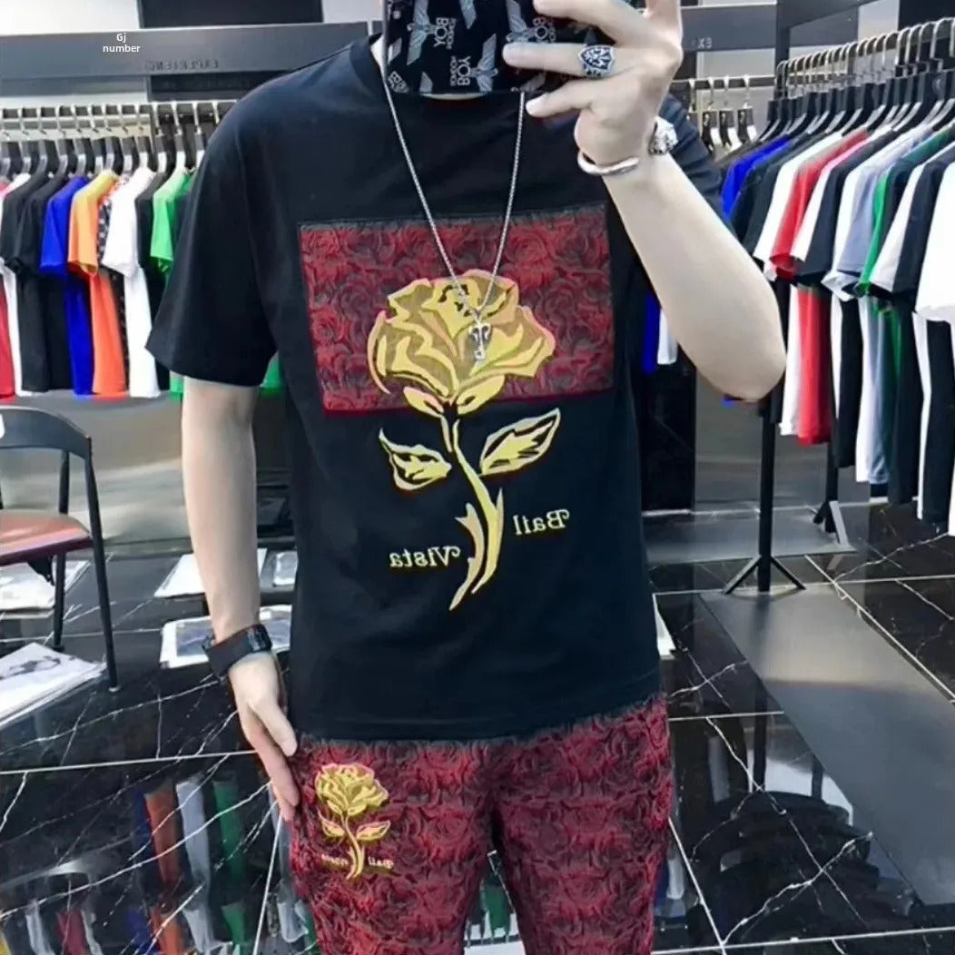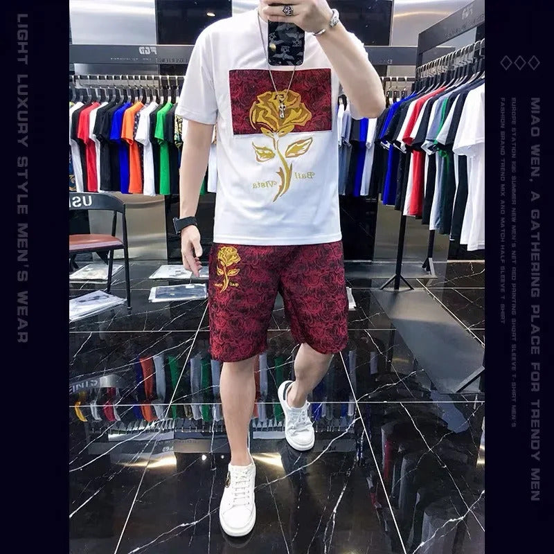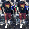 男士套装Fashionable Casual Men's Suite Unique Letter Printed Ice Silk Top With Shorts 2-Piece Set Summer Style European Station