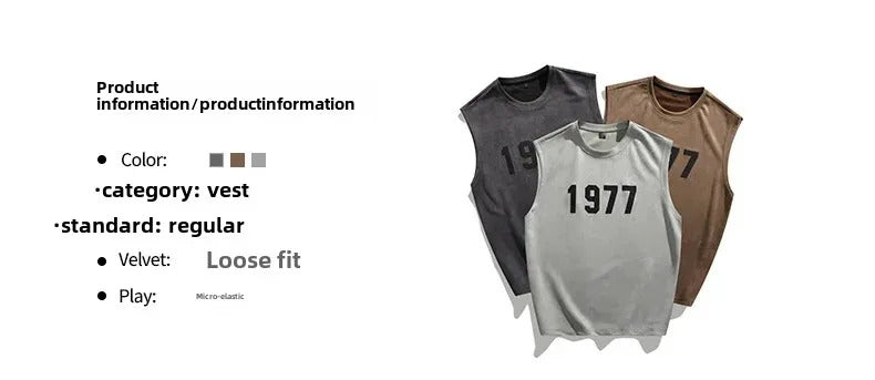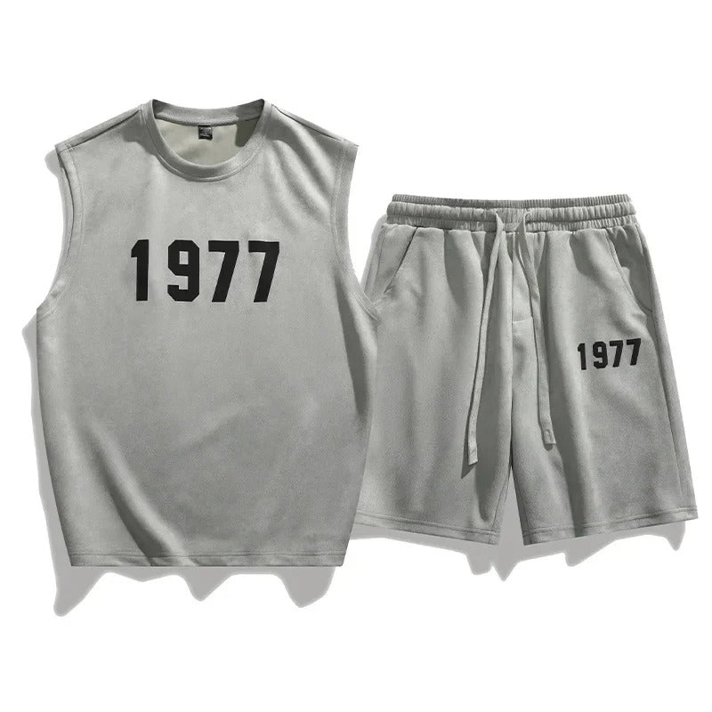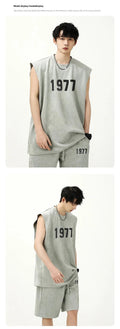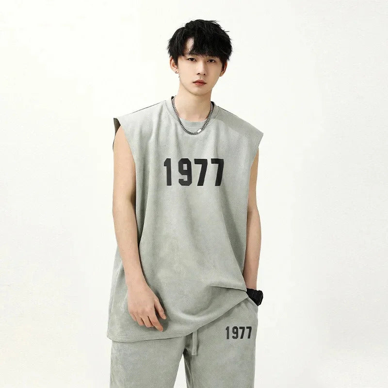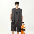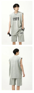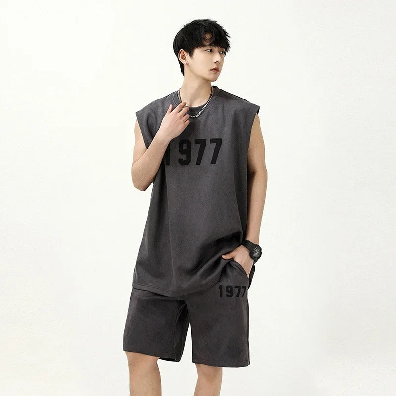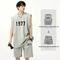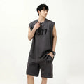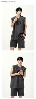 男士套装Fashionable Letter Printed Chamois Leather Vest2-Piece Set Summer Men's Sleeveless T-Shirt Straight-Leg Shorts Suit