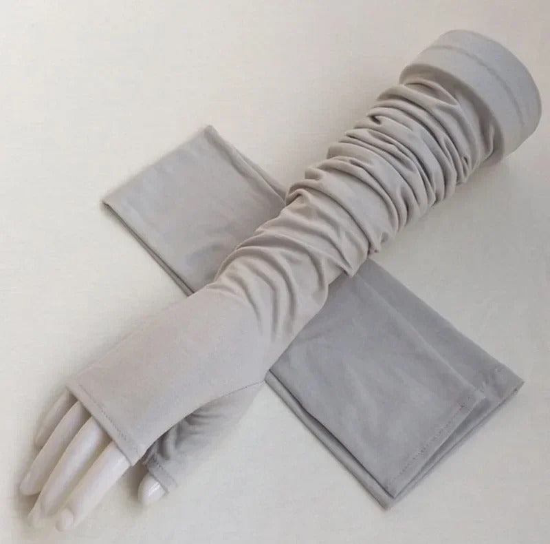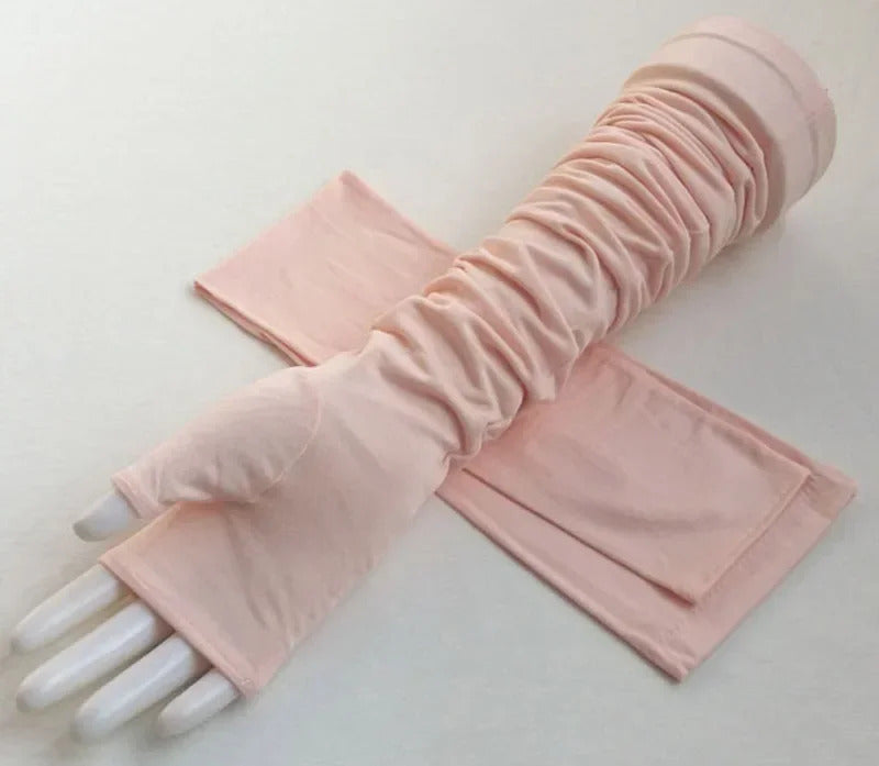 防晒手套女Female Sports Fitness Cycling Sunscreen Touch Screen Long Fingerless Mitten Women Cotton Fashion Half Finger Driving Gloves B89