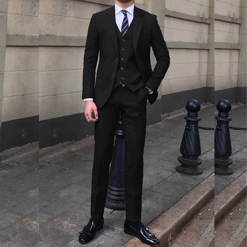 礼服男Formal Black Men Suits High Quality Single Breasted Notch Lapel Regular Length 3Piece Jacket Pants Vest Male Clothing Blazer