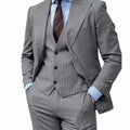 礼服男Formal Pinstripe Mens Suit Slim Fit 3 Pieces Blazer Vest Pants Set One Button Peak Lapel Elegant Tuxedos Wedding Groom Ceremony