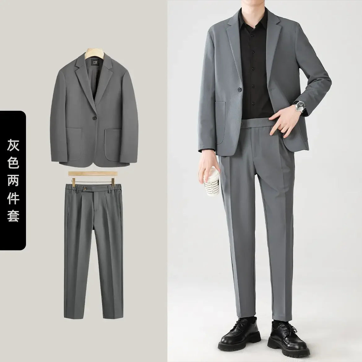 商务装男Full Suit for Men Dress Business Korean 2 Piece Outfit Set Man Formal Pants Ceremony Elegant Spring Autumn Blazer New In Casual