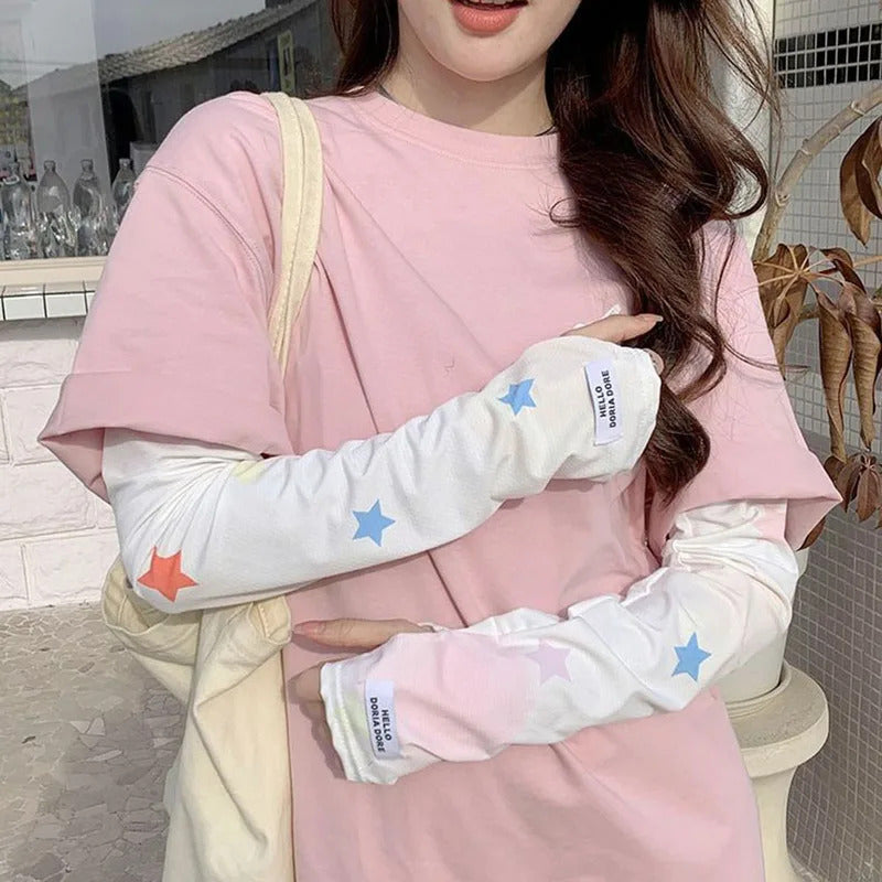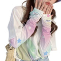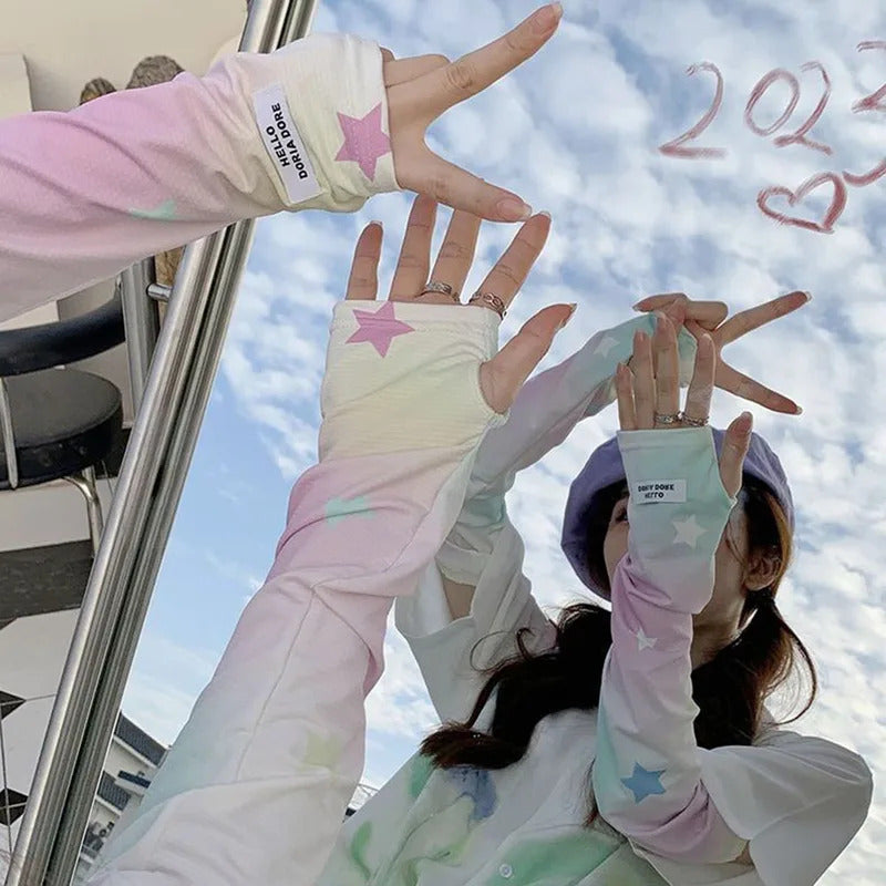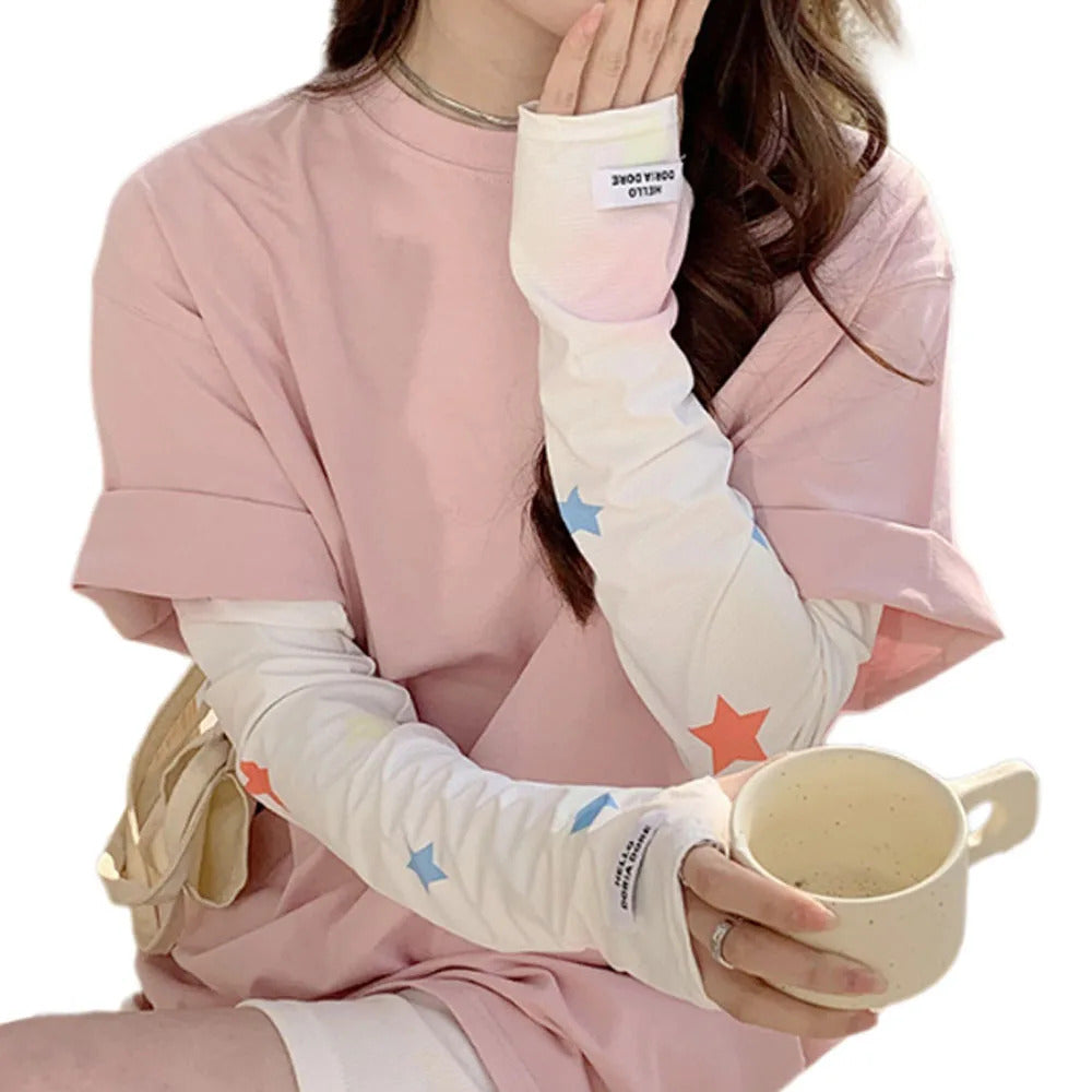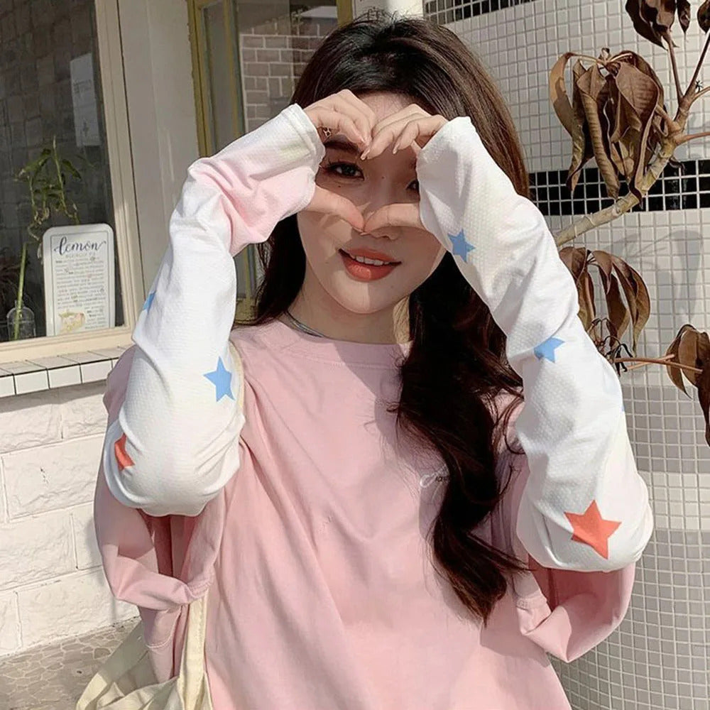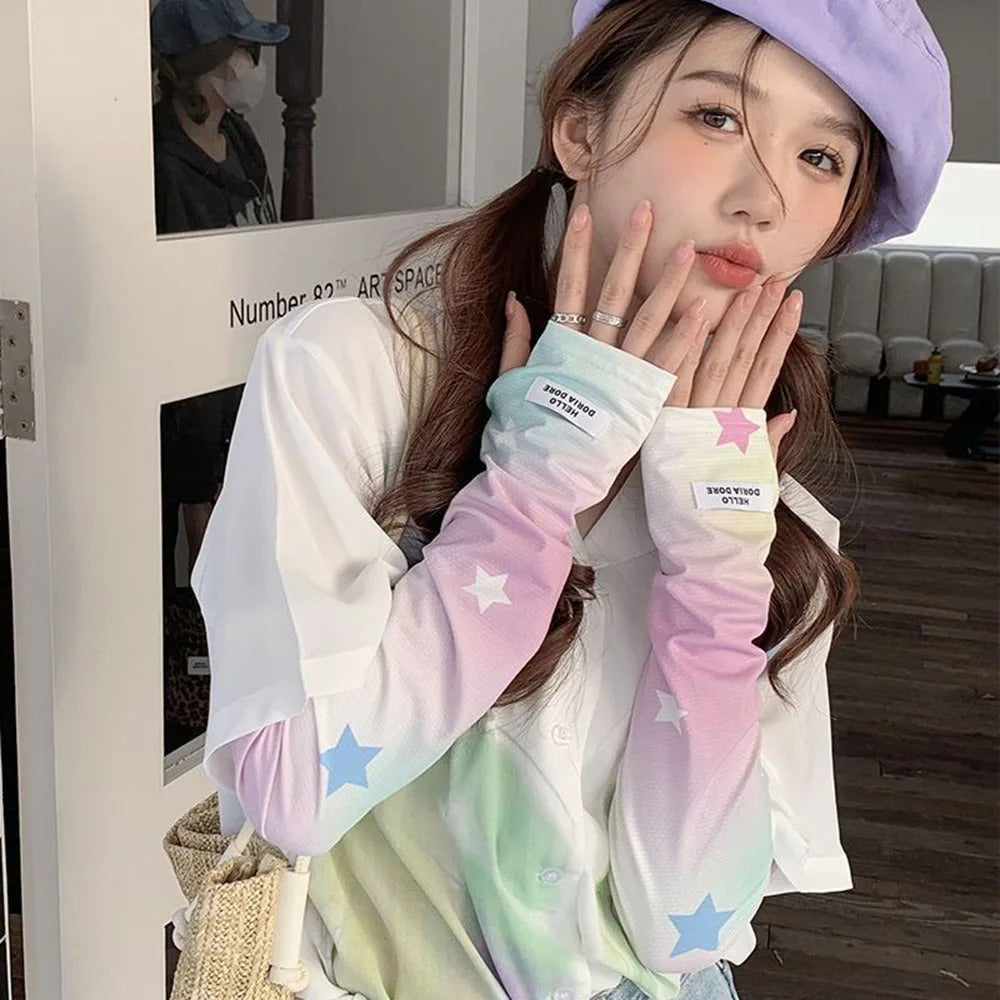 防晒冰袖女Girls UPF50+ Arm Sleeves Colorful Star Summer Sun UV Protection Half Finger Sleeves Cooling Running Cycling Long Arm Sleeve
