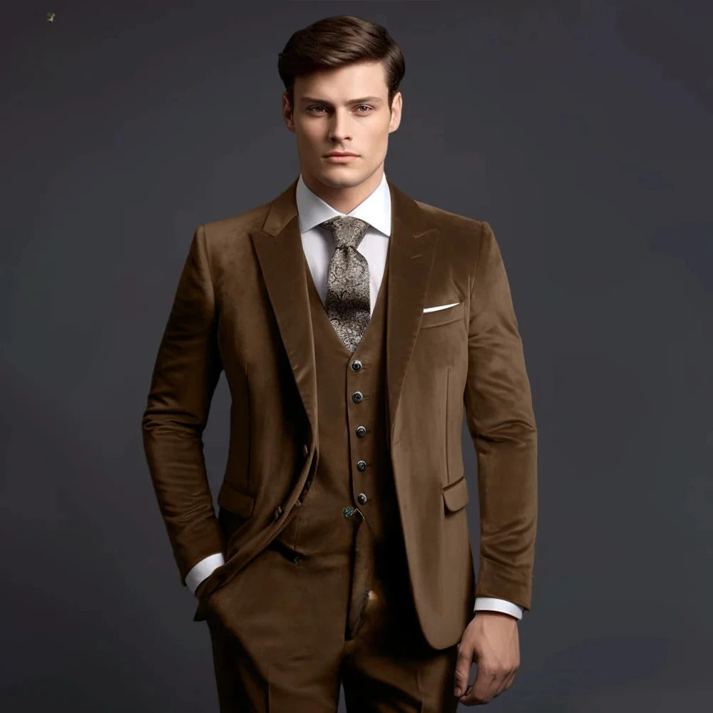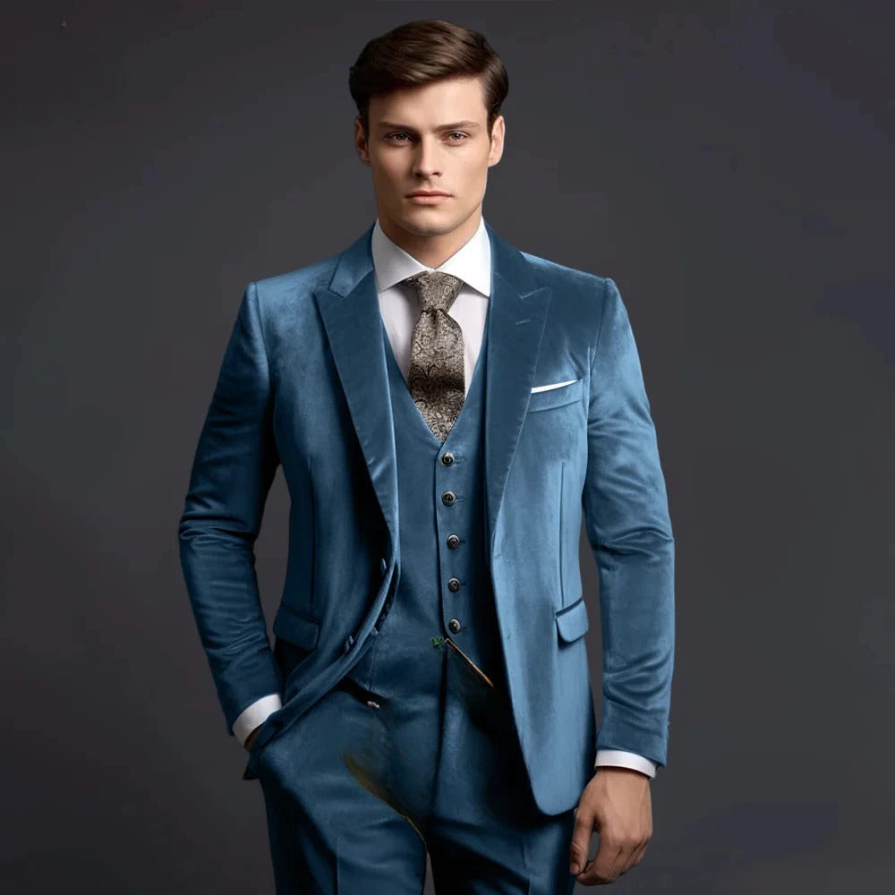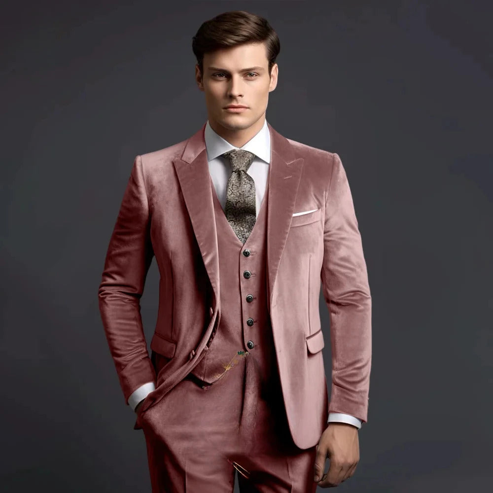 礼服男Grey Velvet Men's Suits Elegant Wedding Single Breasted Peak Lapel Slim Fit Male Clothing High Quality 3 Piece Jacket Pants Vest