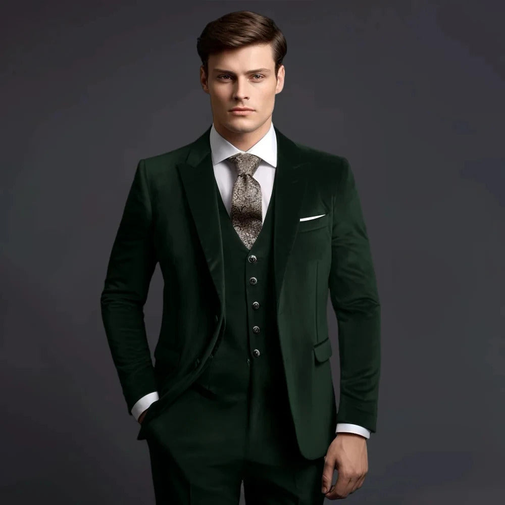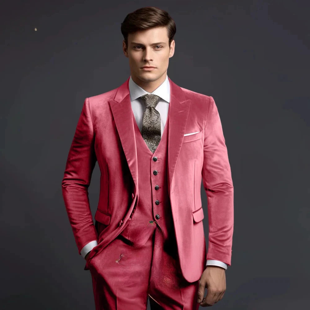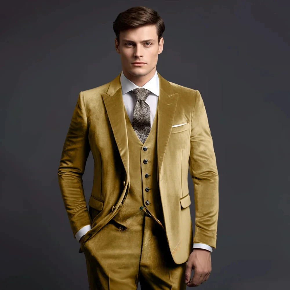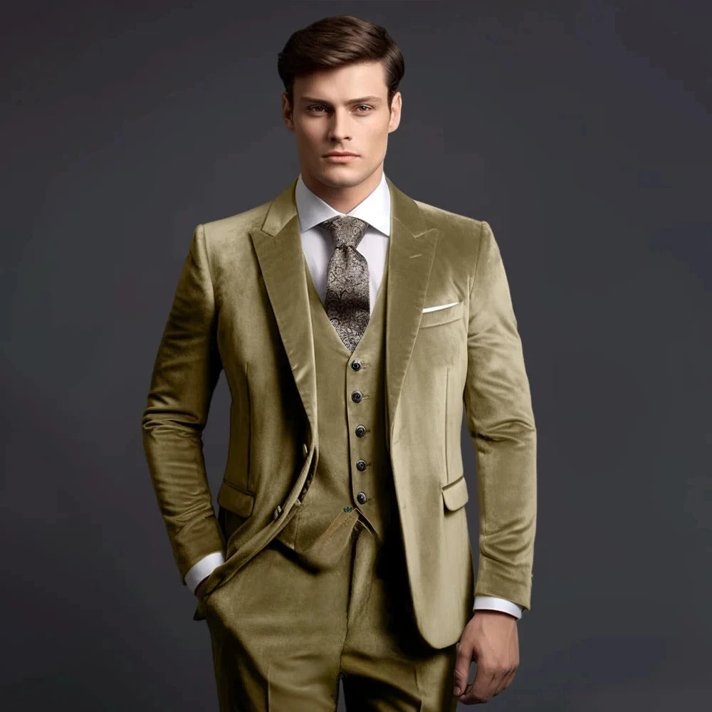 礼服男Grey Velvet Men's Suits Elegant Wedding Single Breasted Peak Lapel Slim Fit Male Clothing High Quality 3 Piece Jacket Pants Vest