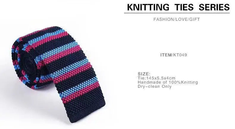 领带男Handmade High Quality Narrow Ties 5.5CM Knitted Flat Stripe Contrast Color Necktie for Man Women Banquet Casual Tie Lover's Gift
