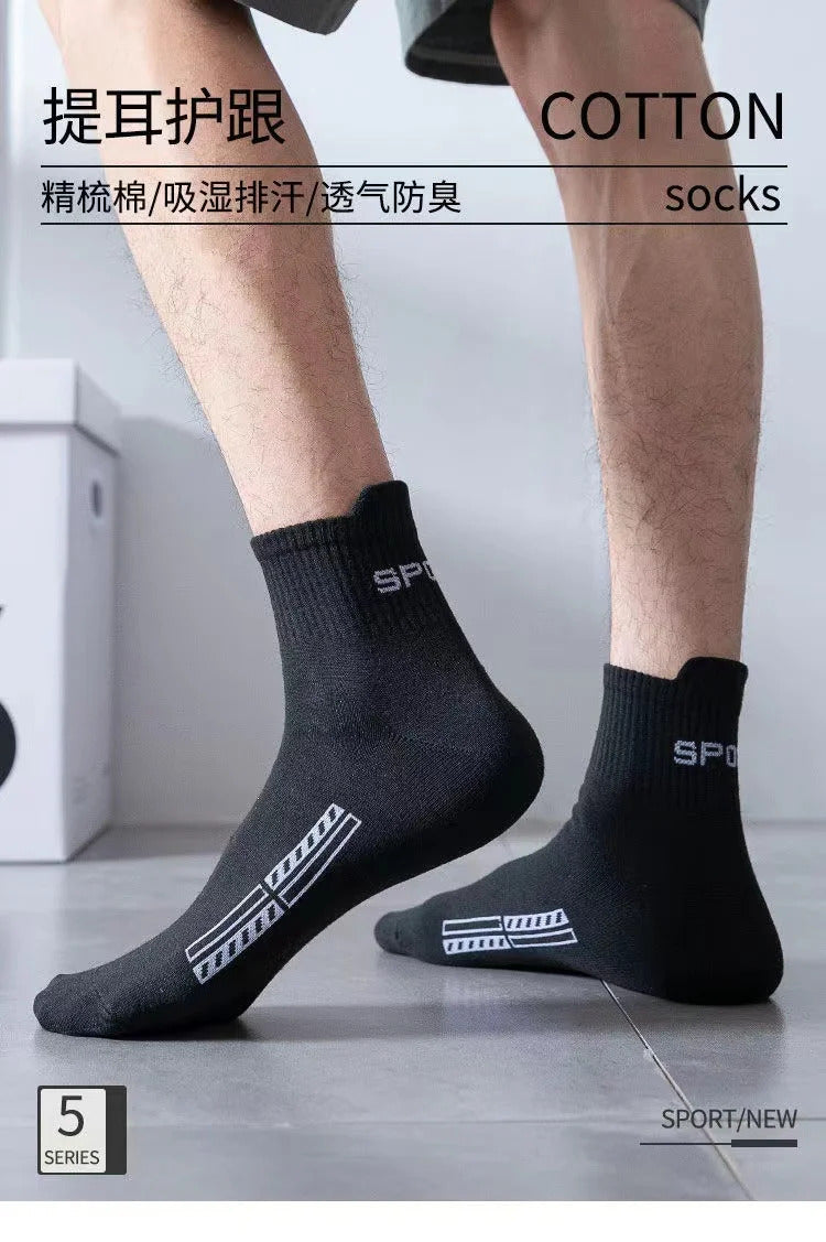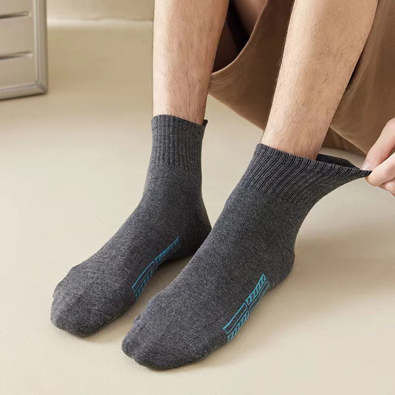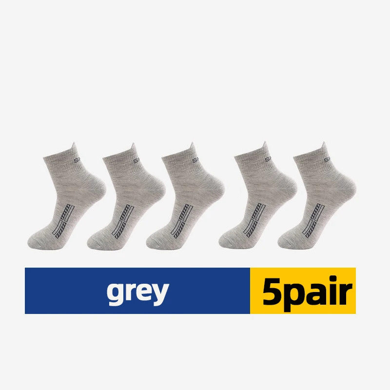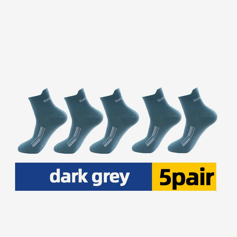 Specifications:Material: 85% Cotton, 13% Spandex, 2% Other YarnQuantity: 5 PairsSize: Eurocode 38-45Color Variety: Black, Grey, Brown, Dark Grey, Navy BFunctionality: Antibacterial, Breathable, Deodorant, Sweat AbsorbingDesign: Middle Tube SocksFeatures:|Heavy Weight Socks|**Versatile Comfort for Every Season**Our High Quality Lot Men's Socks are designed to provide comfort and durability for any season. Whether you're running in the spring, enjoying a summer hike, or braving the cold in winter, these socks are your perfect companion. The breathable cotton fabric ensures your feet stay cool and dry, while the antibacterial properties keep them fresh and odor-free. The middle tube design offers a snug fit that stays in place, making them ideal for sports and leisure activities.**Tailored for Active Lifestyles**These socks are not just about comfort; they're built for performance. The blend of cotton and spandex provides a stretchable fit that accommodates a wide range of foot sizes, from Eurocode 38 to 45. The non-slip grip ensures your socks stay in place during intense workouts or long walks, while the deodorant and sweat-absorbing properties keep your feet dry and fresh. The variety of colors, including classic black, grey, brown, dark grey, and navy B, allows you to mix and match with your favorite athletic wear.**A Gift of Comfort for Every Occasion**Whether you're looking for the best socks for walking in hot weather or the best work socks for cold weather, these socks are versatile enough to meet all your needs. They're not just for sports enthusiasts; they're perfect for everyday wear, making them a thoughtful gift for men who value comfort and style. With a pack of 5 pairs, you'll have a fresh pair for every day of the week, ensuring you're always ready for any adventure or workday.