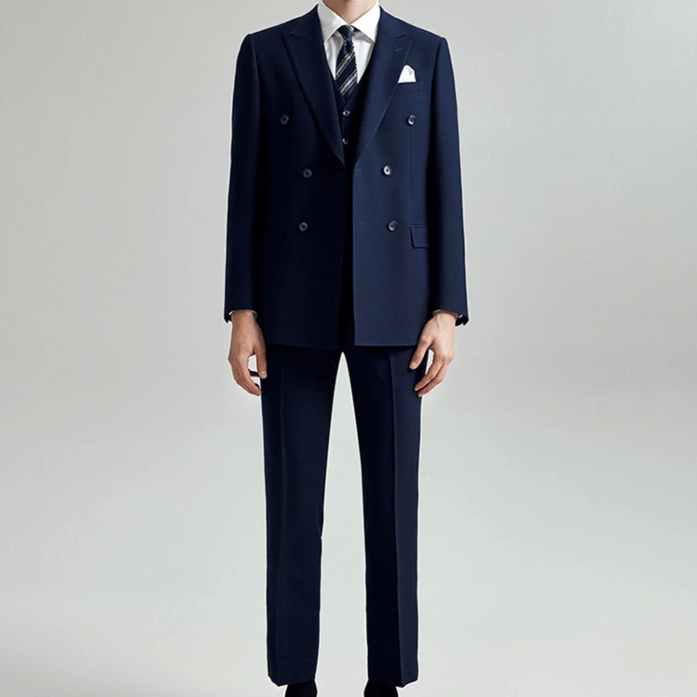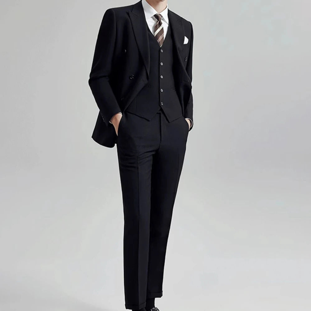礼服男High Quality Men's 3 Piece Suits Double Breasted Peak Lapel Slim Fuit Jacket Pants Vest Wedding Male Clothing Costume Homme