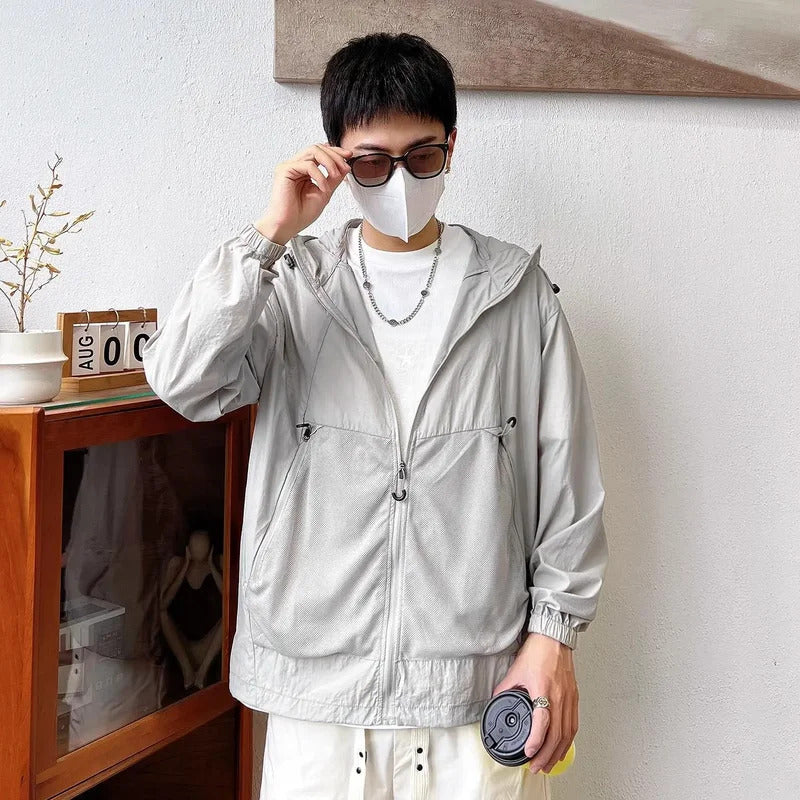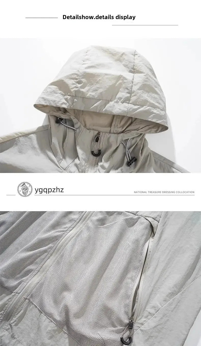 防晒衣男Hooded Sun Protection Jacket For Men Loose Fit Versatile Casual Top Anti Uv Protection Summer Fashionable Cardigan