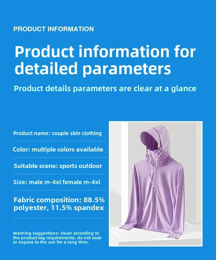 防晒衣男Ice Sense Sunscreen Clothing Women's UPF50+ Anti-Uv Ice Silk Sun Protection Suit Men's Cycling Jacket Skin Clothing Summer