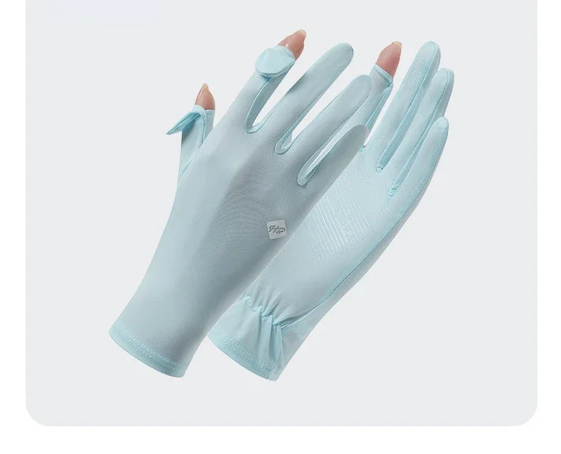 防晒手套女Ice Silk Gloves Women Cycling Flip Touch Screen Gloves Thin Anti-wear Sports Gloves Outdoor Driving Sun Protection Mittens