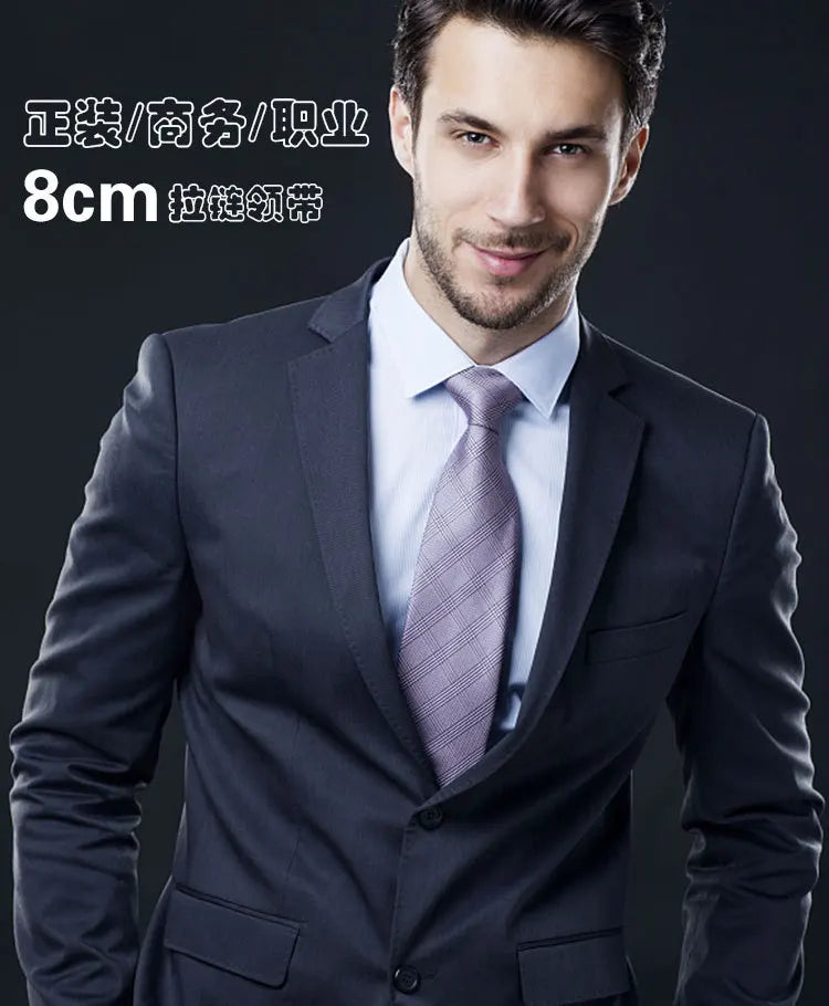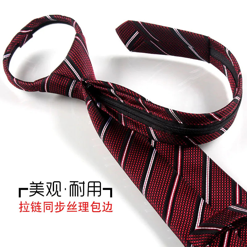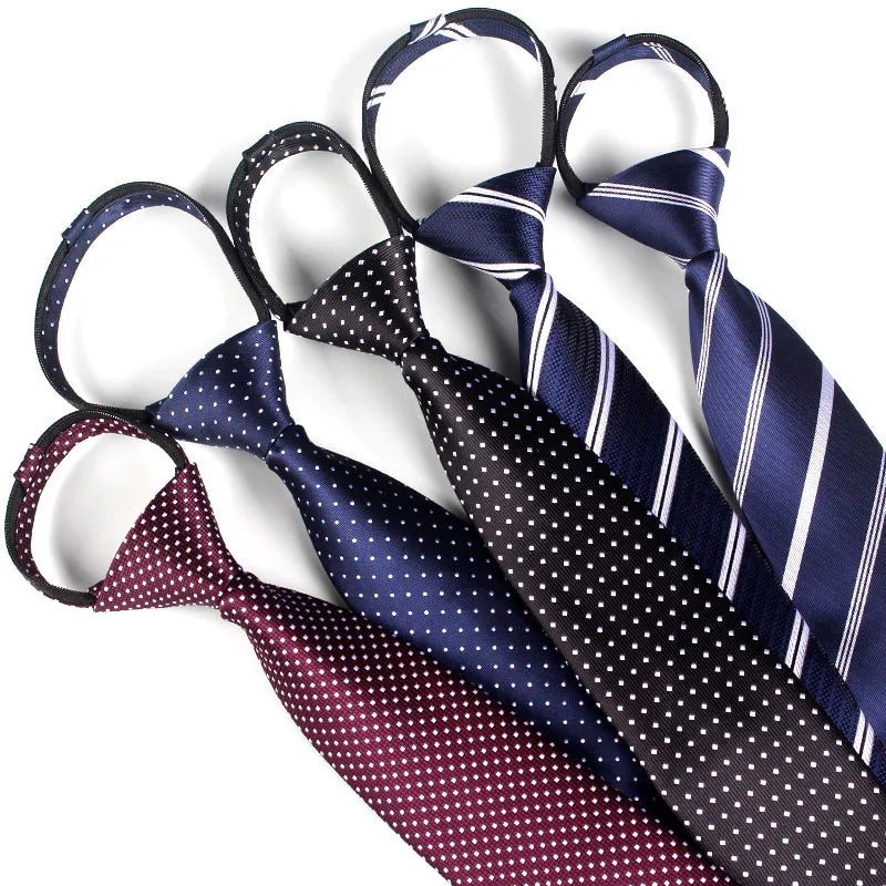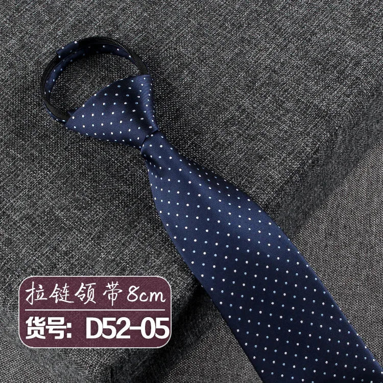 NEW Paisley Zipper Ties for Men 8CM Neck Tie Solid Striped Polka Dots Silk Neckties Men's Automatic Zipper Tie Blue Lazy Ties