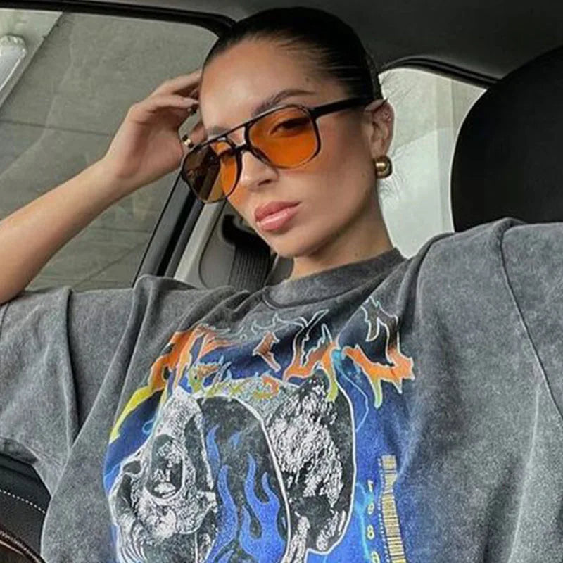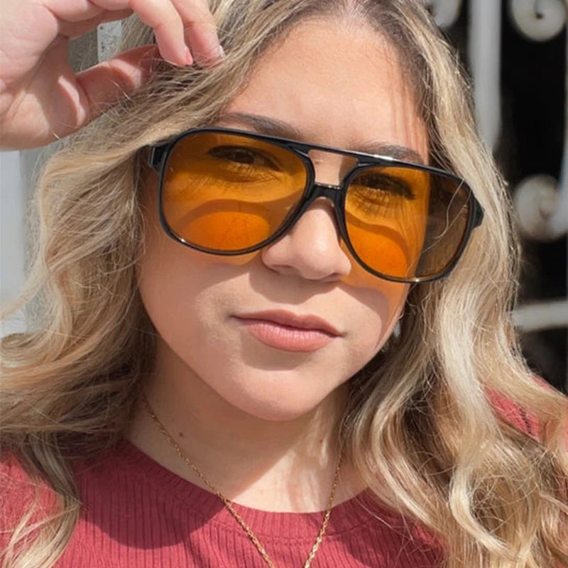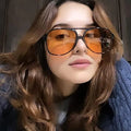 Vintage Oval Yellow Lens Oversized Sunglasses Ladies Luxury Brand Pilot Frames Plastic Sun Glasses Trendy Shades For Women
