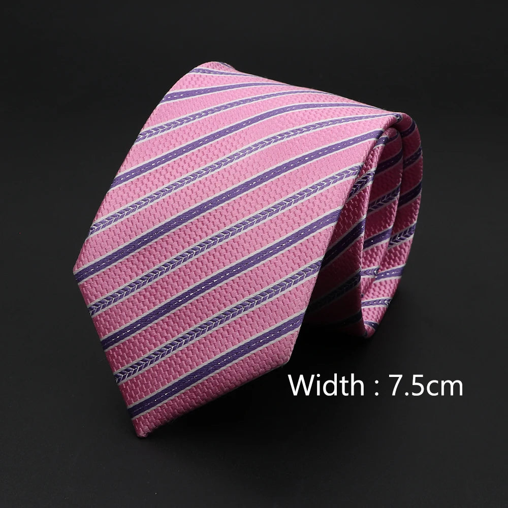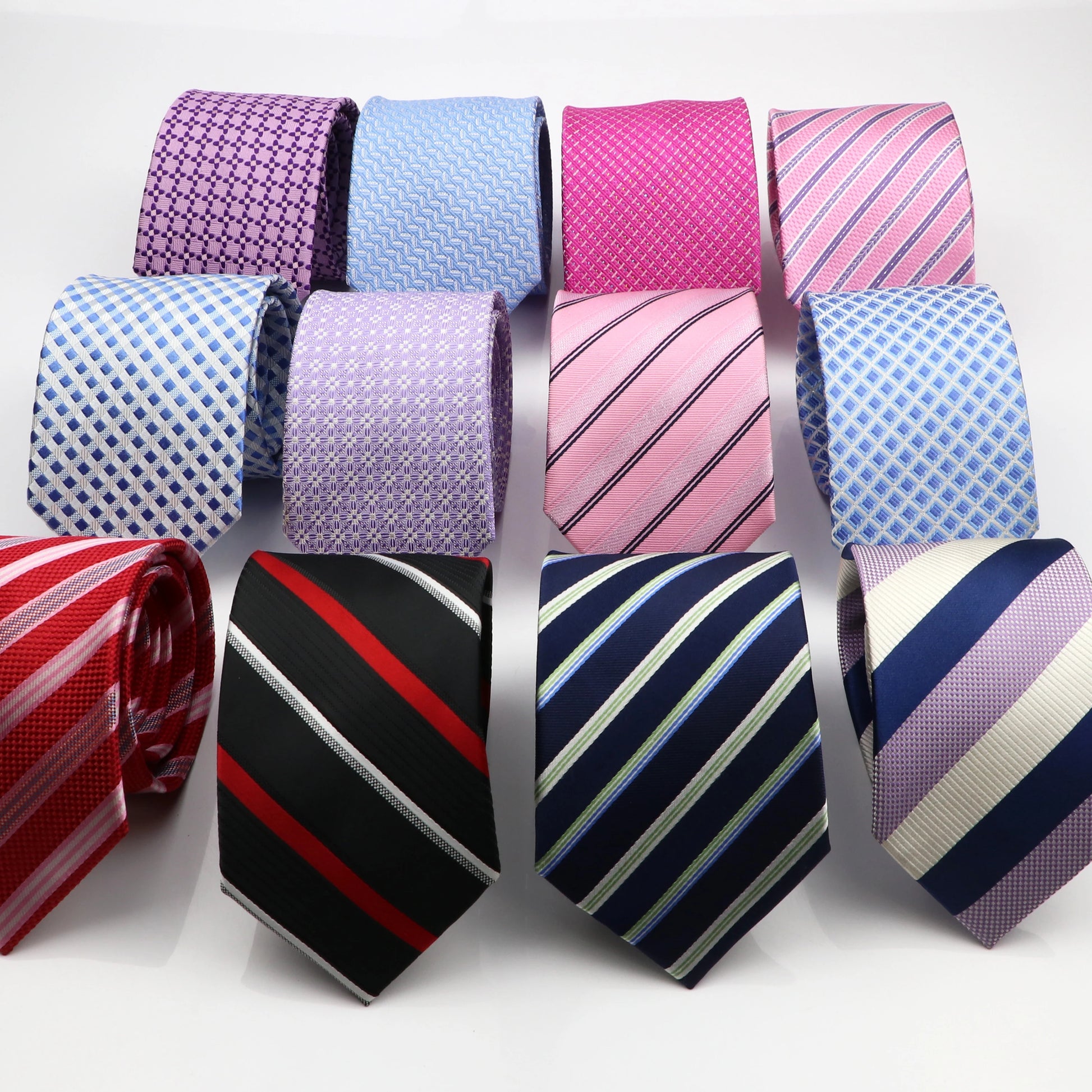 New Classic 100% Silk Tie Blue Pink Striped Plaid Necktie Mens Business Skinny Tie Tuxedo Suit Shirt Gift Daily Wear Accessory