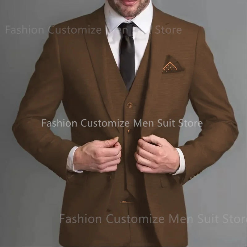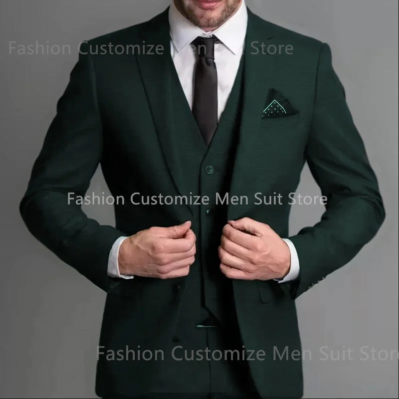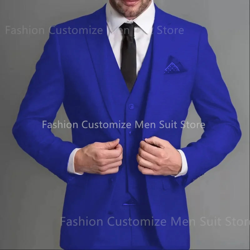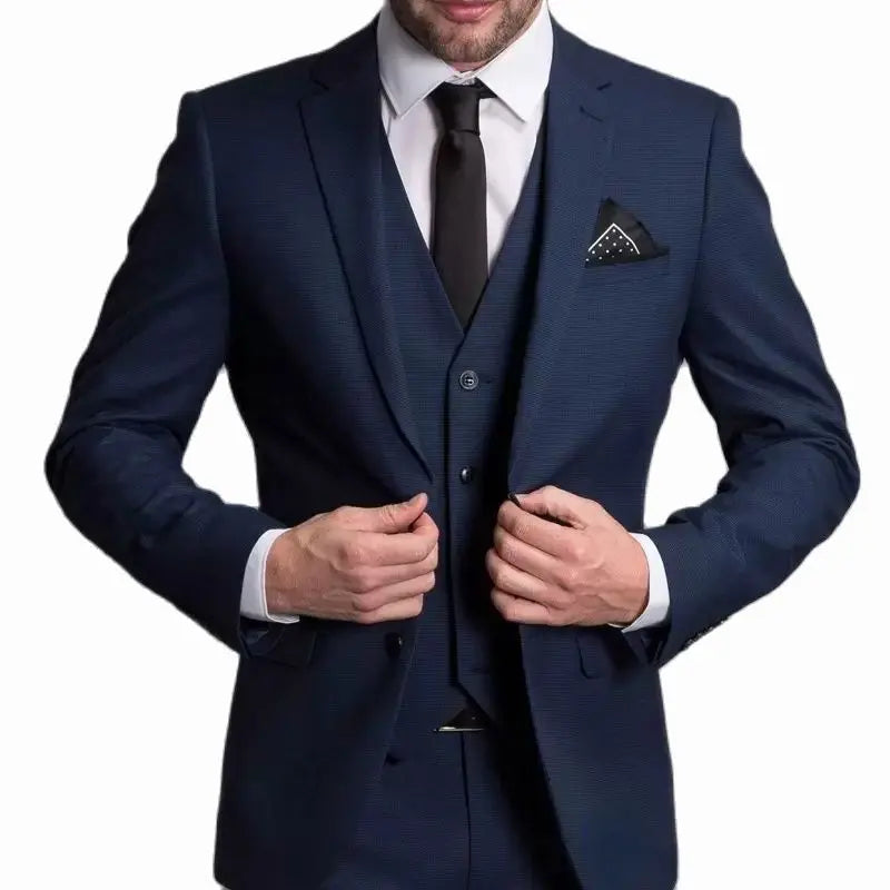Navy Blue Male Suits Slim fit Notched Lapel Wedding Tuxedos 3 Piece Sets Tailor Made Business Mens Costume (Blazer+Pants+Vest)