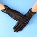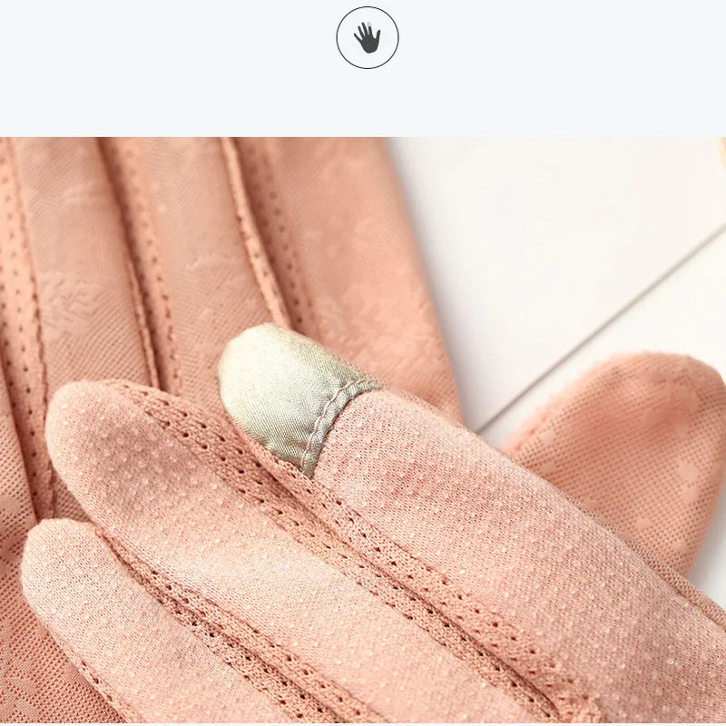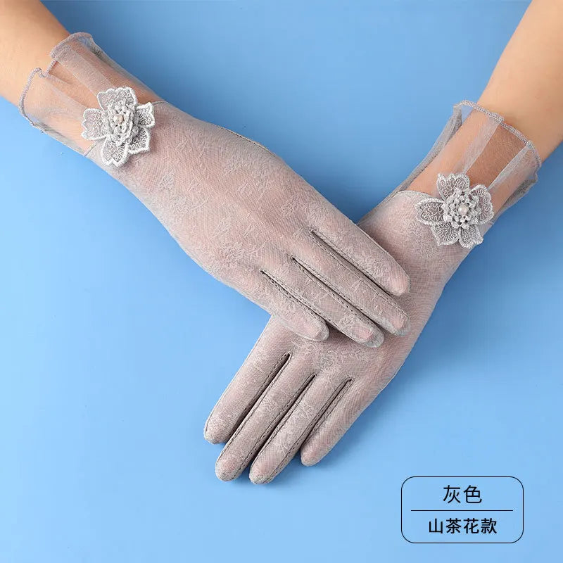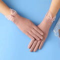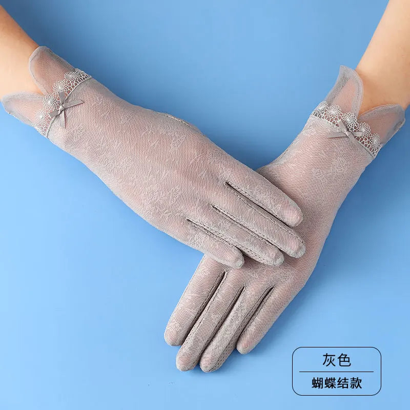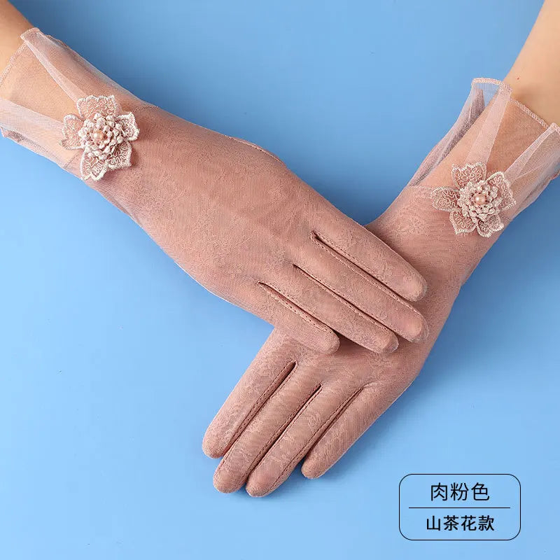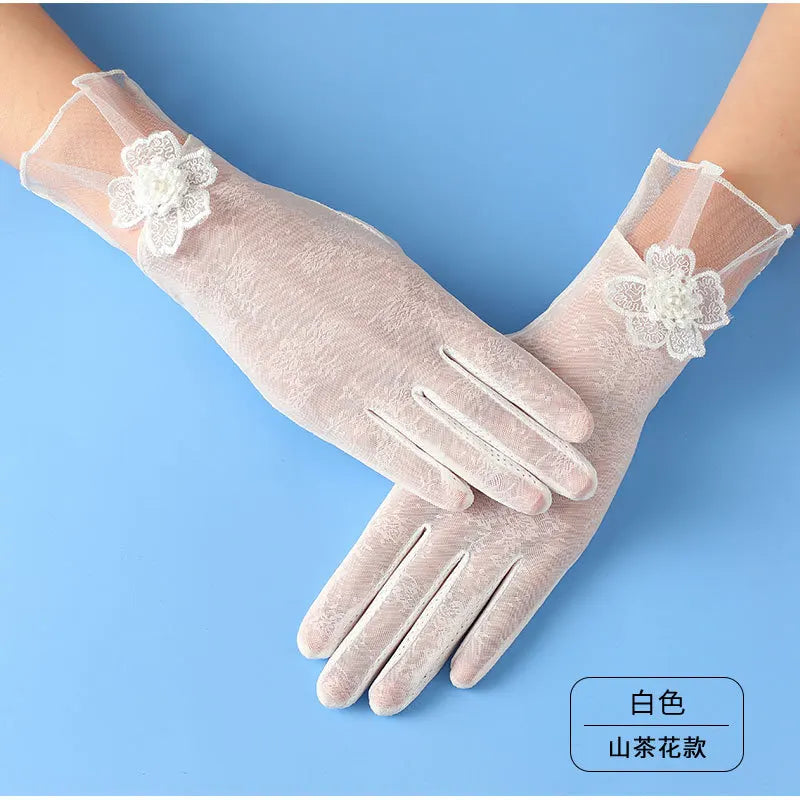 Lace Sunscreen Gloves Summer Women Sexy Ice Silk Non-Slip Touch Screen Breathable Thin Mid-Length Elegant Pearl Flower Bow TK31