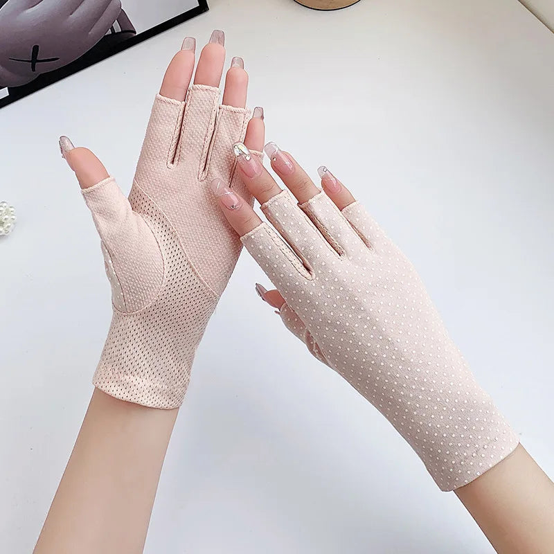 Women Summer Cotton Breathable Sunscreen Touch Screen Drive Ride Non-Slip Half-finger Gloves Dot Simple Elasticity Soft