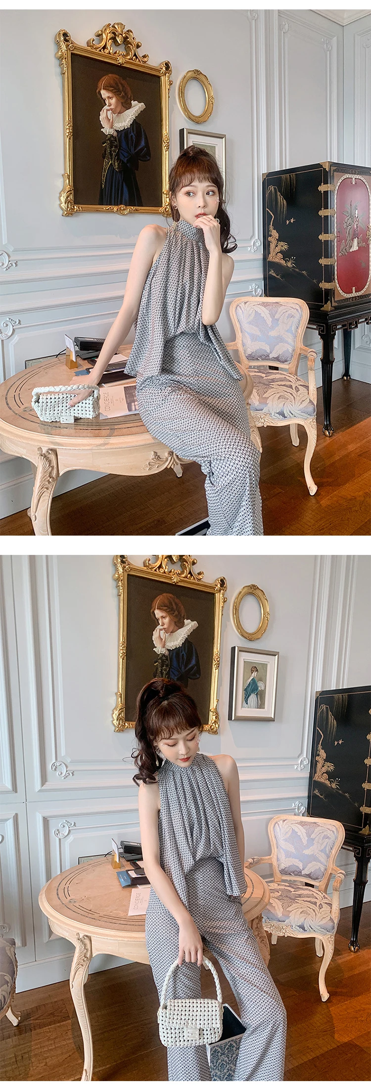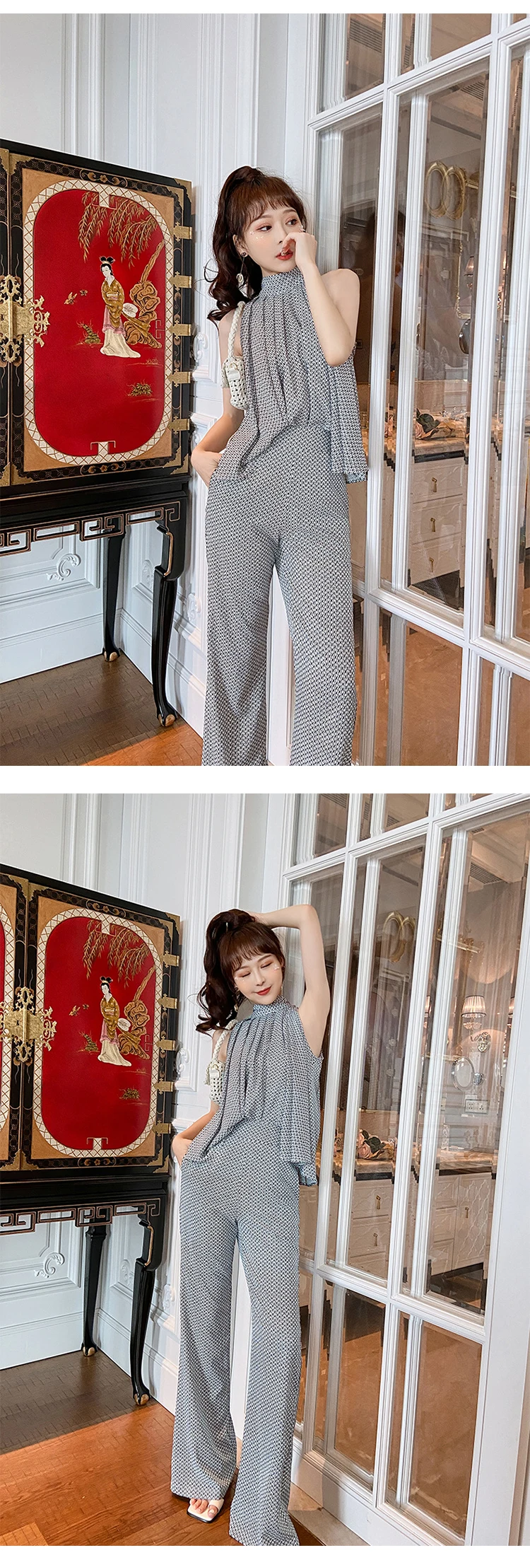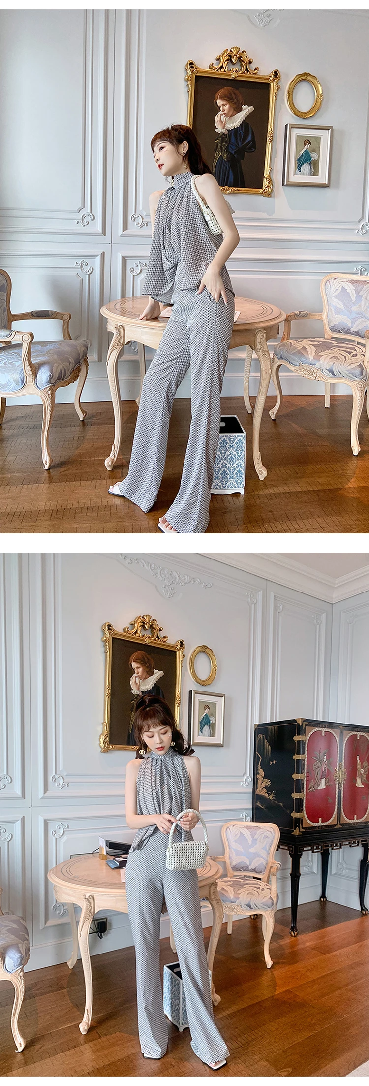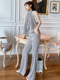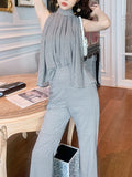 2023 Elegant Casual 2 Piece Sets Women Halter Bandage Lace Up Folds Loose Tops Long Trousers Female Street Holiday Party Clothes