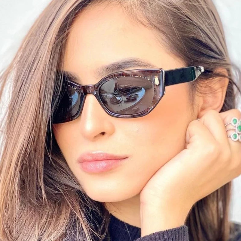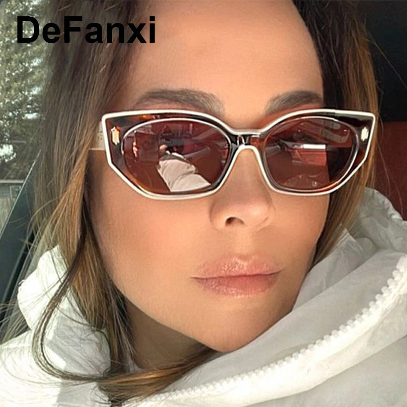Vintage Small Frame Skinny Cat Eye Sunglasses Women Luxury Brand Iconic Rivet Gradient Sun Glasses UV400 Trendy Ladies Eyewear