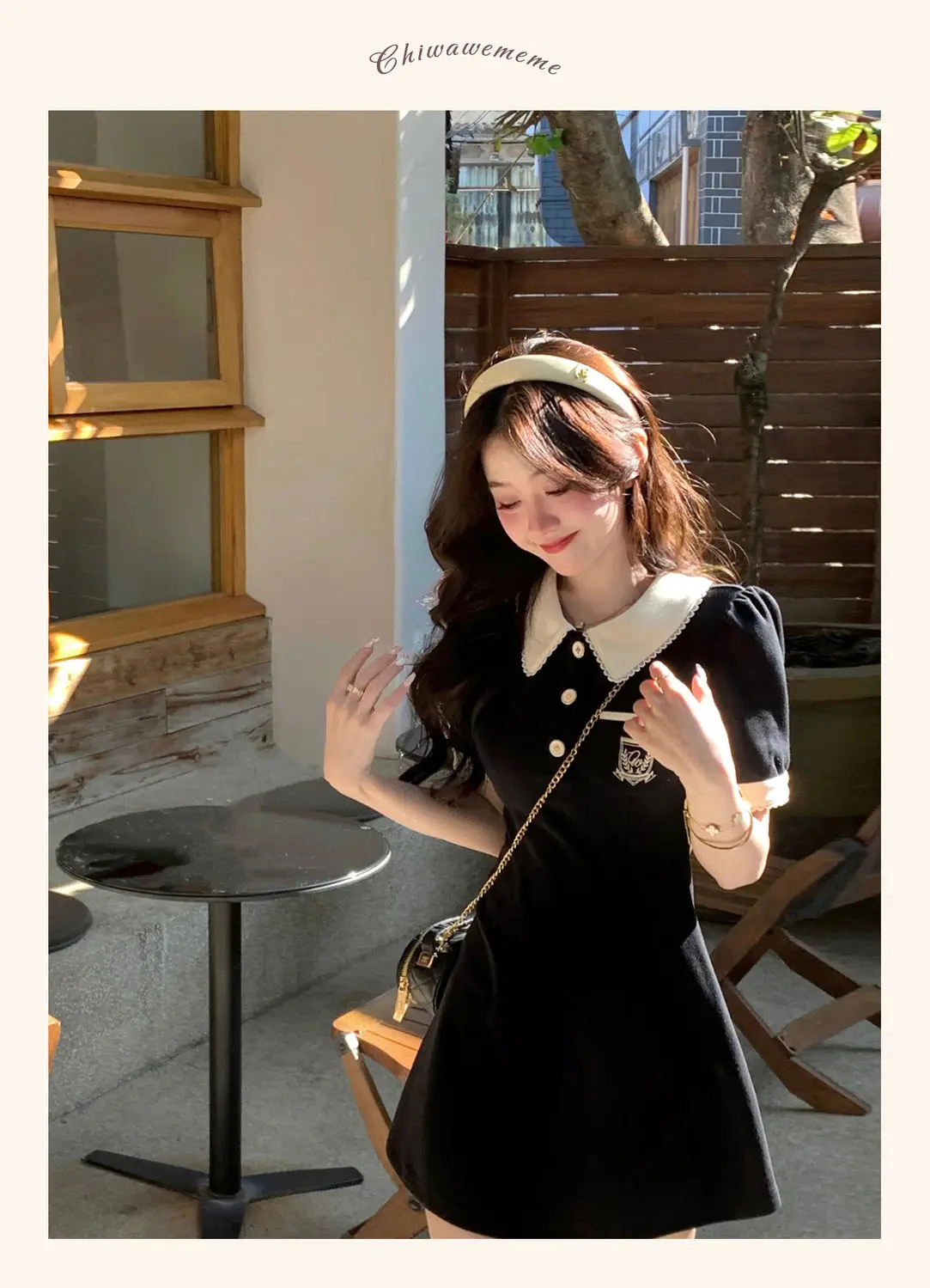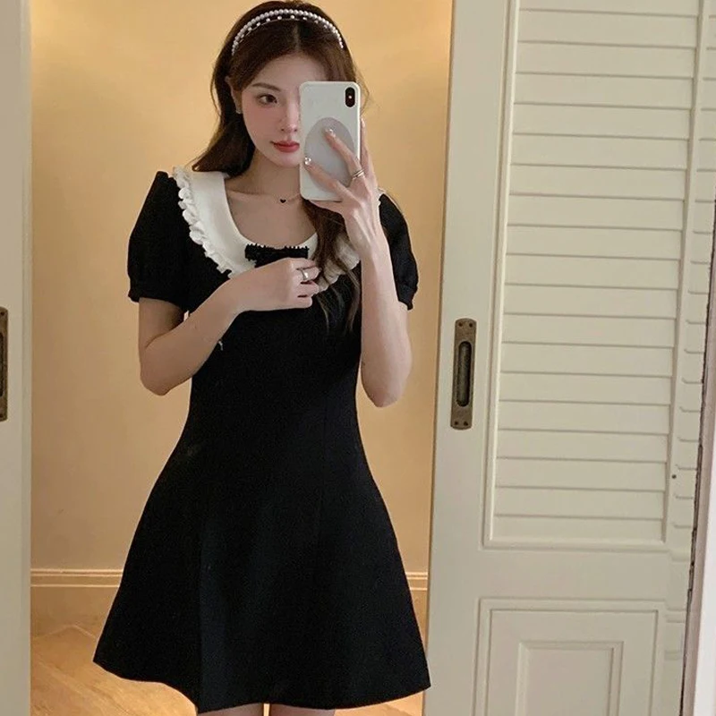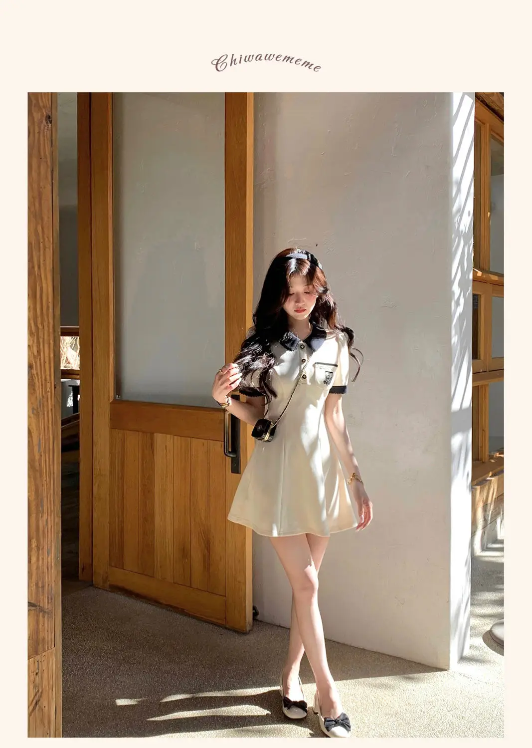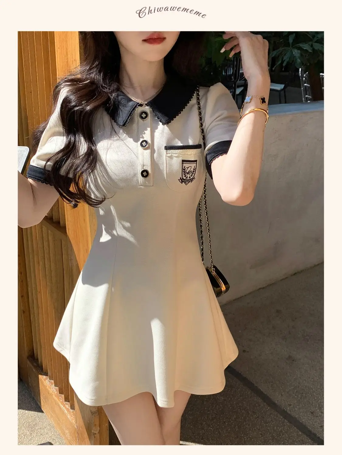 Polo Women's Dress With Collar One Pieces Korea Summer Sweet Short Sleeve Mini Skirt Kpop Elegant Sundress Y2K Aesthetic Skirts
