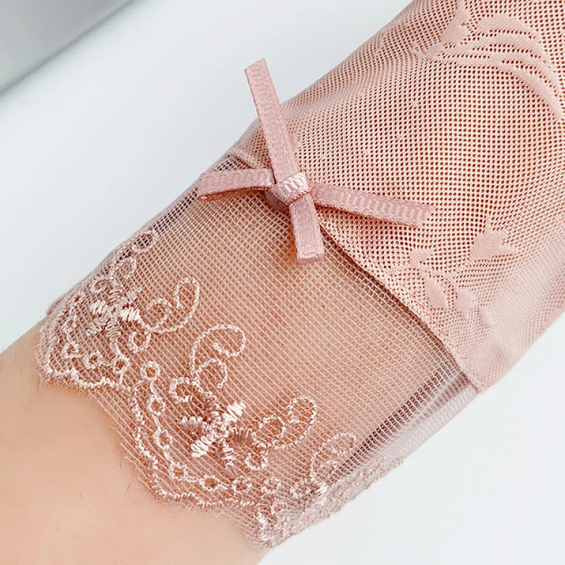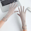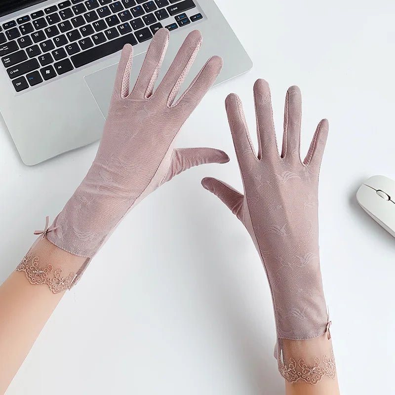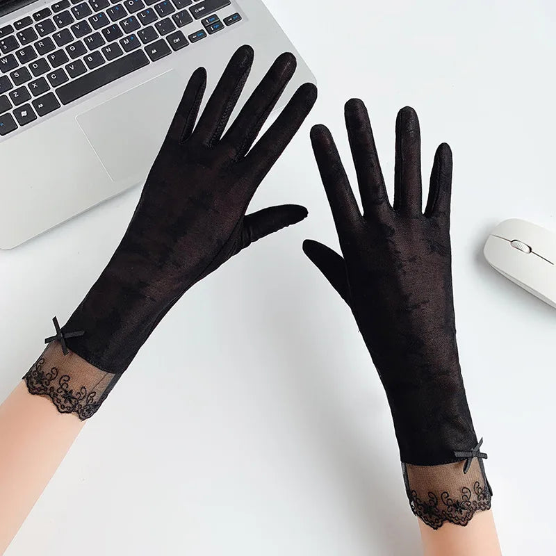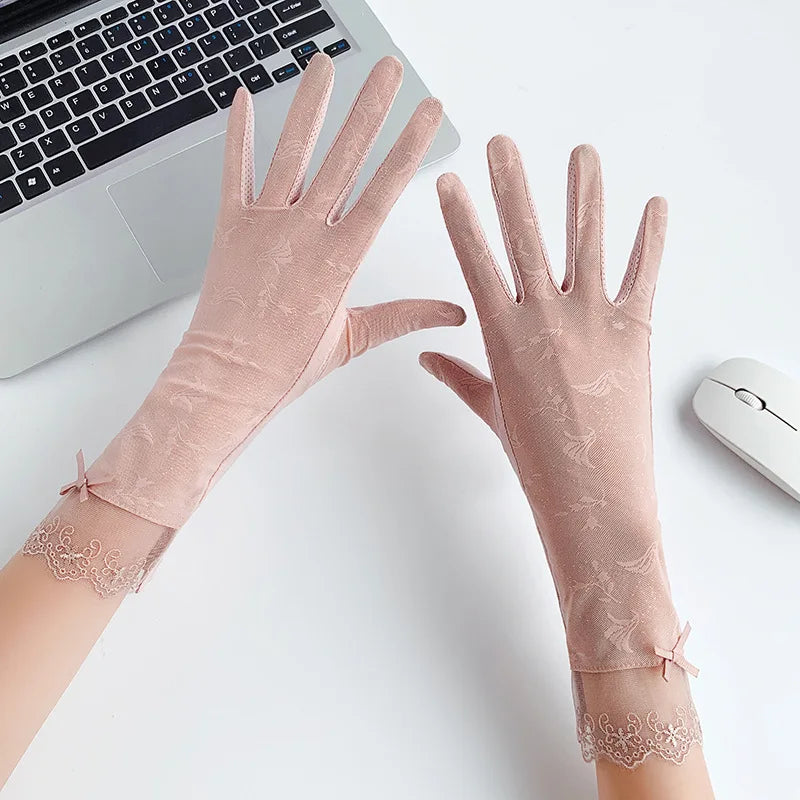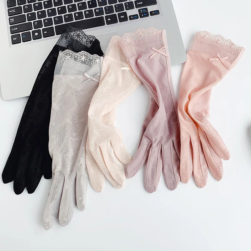 29cm Summer Ice Silk Women Lace Sunscreen Gloves Thin Breathable Touch Screen Mid-length Non-slip Exquisite Driving Transparent