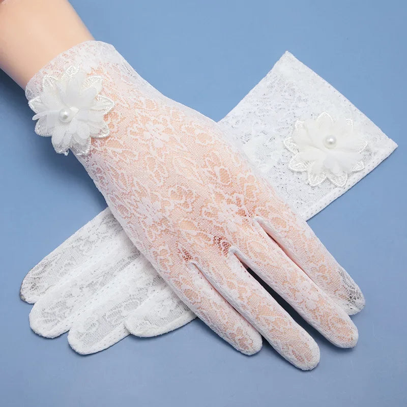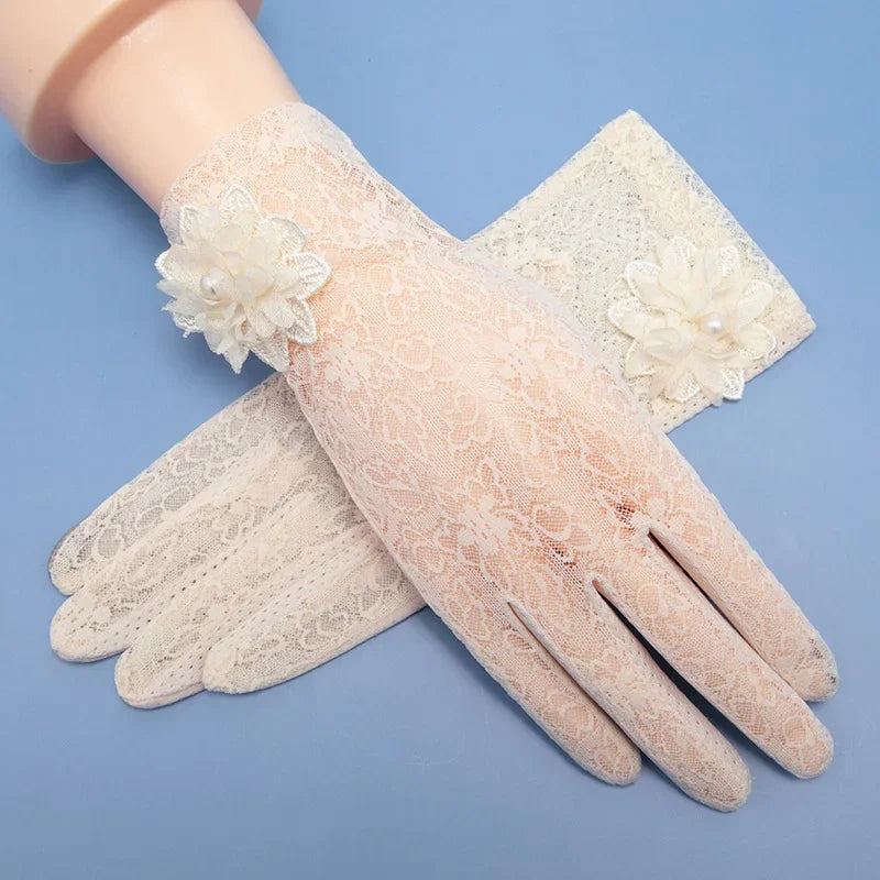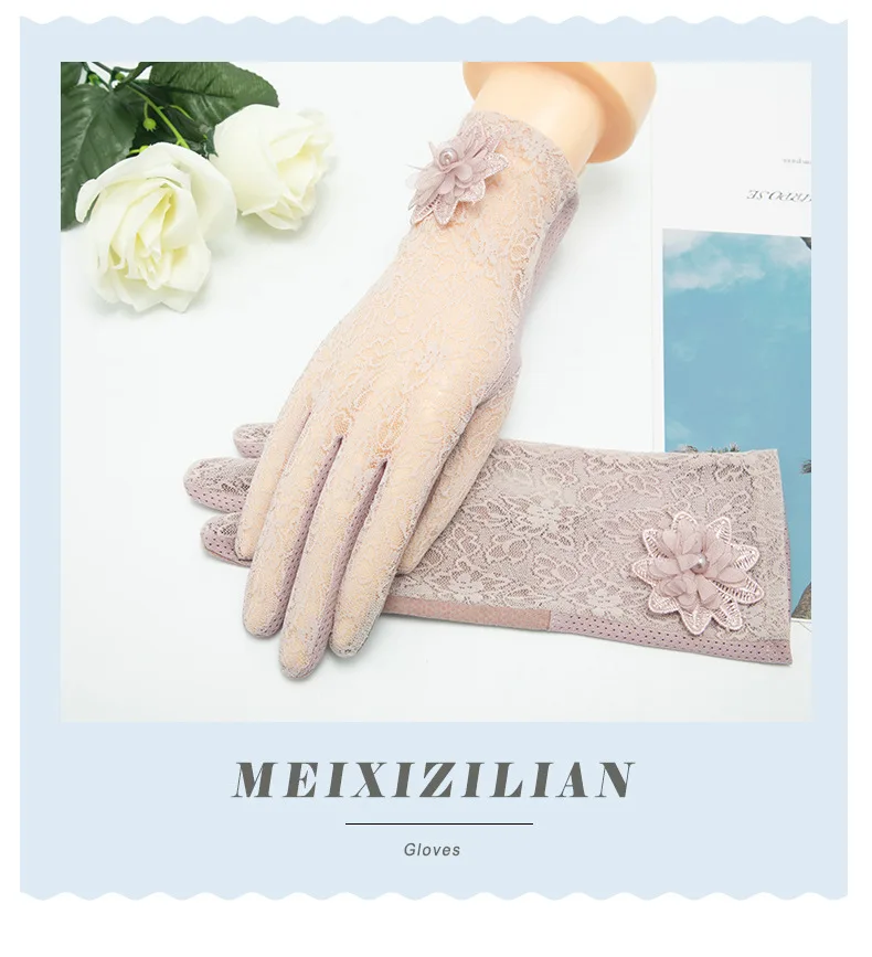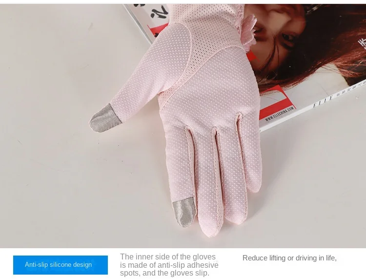 Women's Summer UV Resistant Ice Thin Driving and Cycling Touch Screen Anti Slip Short Sunscreen Lace Gloves
