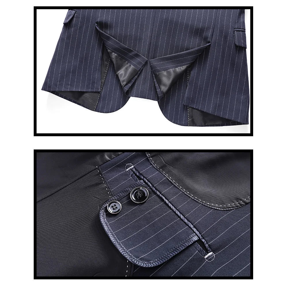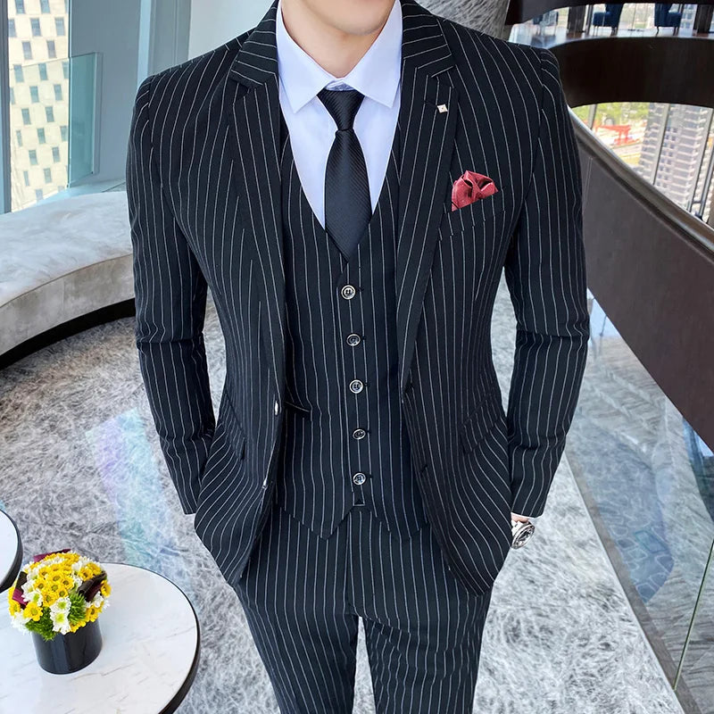 ( Jacket + Vest + Pants ) Prom Groom Tuxedos Latest Designs Male Wedding Suits 3Pcs Set Men's striped casual business suit