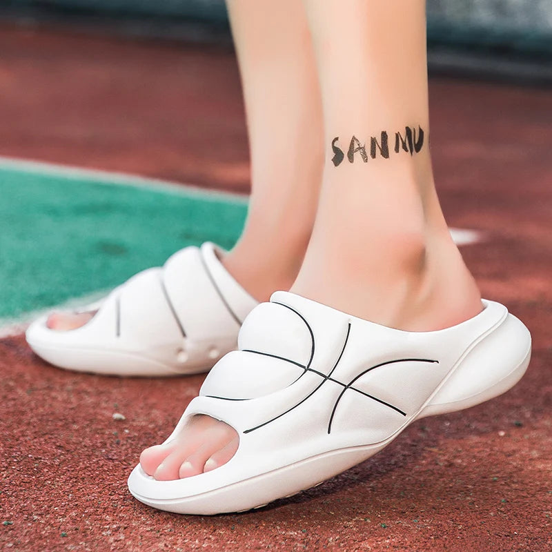 Basketball Style Men Women Slippers Outdoor Sandals Beach Men Casual Shoes Thick Soft Sole Slides Men's Home Slippers Size 36-47