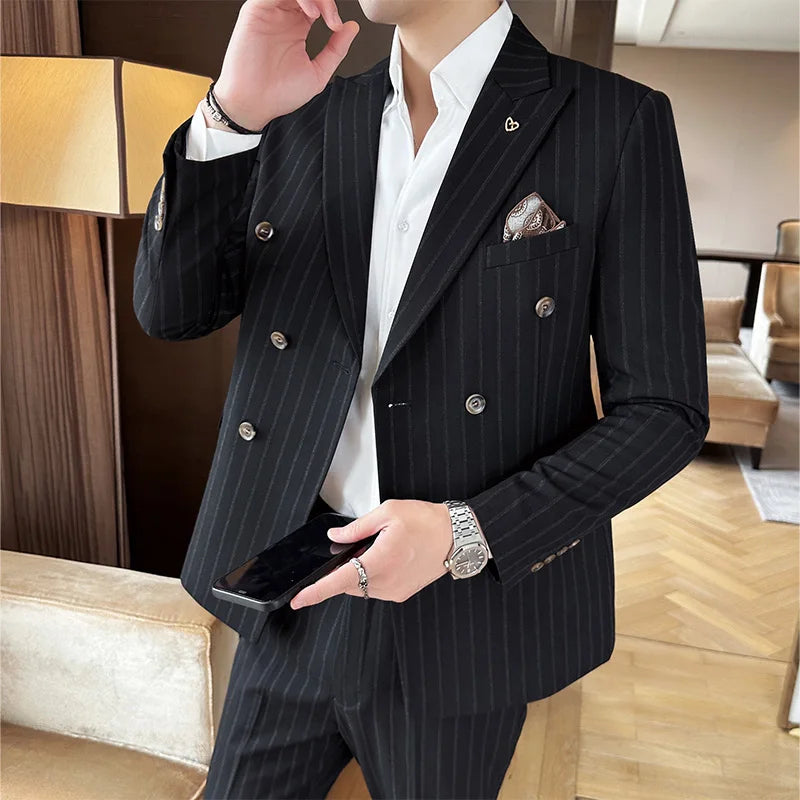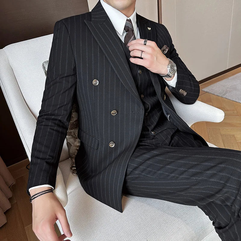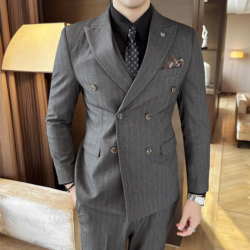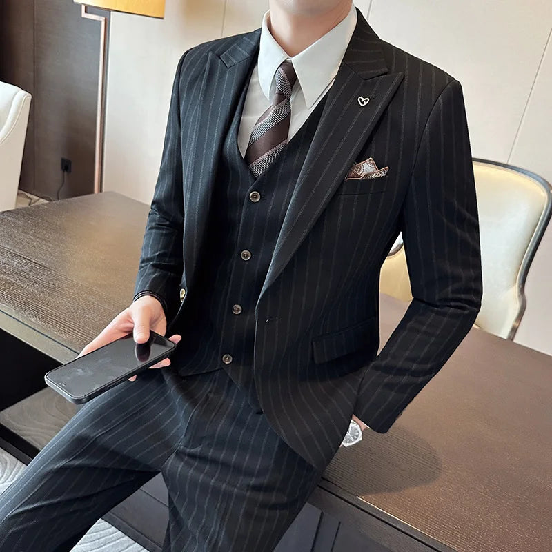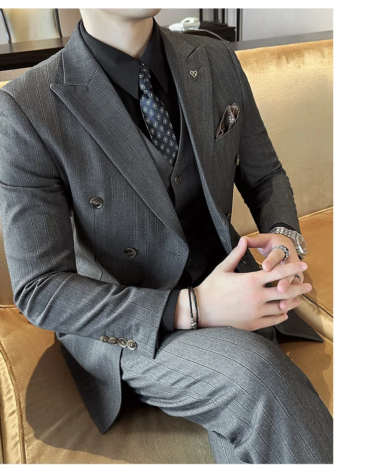 2023 High-grade Autumn and Winter New Men's (suit + Vest + Trousers) Fashion Business Suit Striped Handsome Casual Suit 3/2 Sets