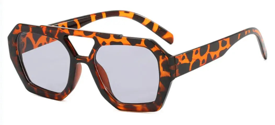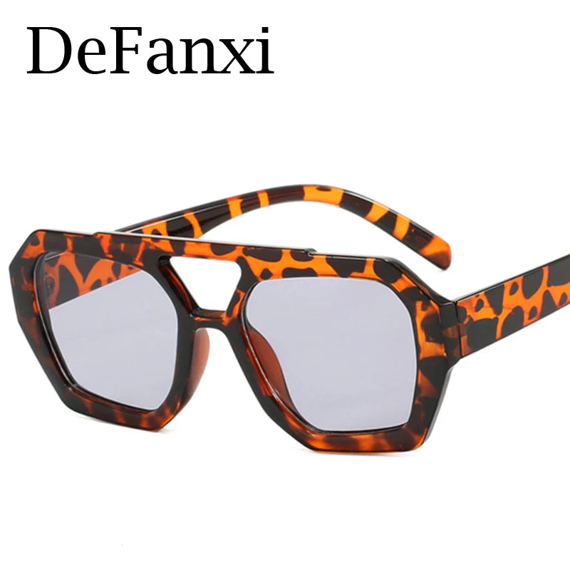 Vintage Oversized Sunglasses Women Luxury Brand Big Frame Double Bridges Sun Glasses Female Black Leopard Square Sunglasses