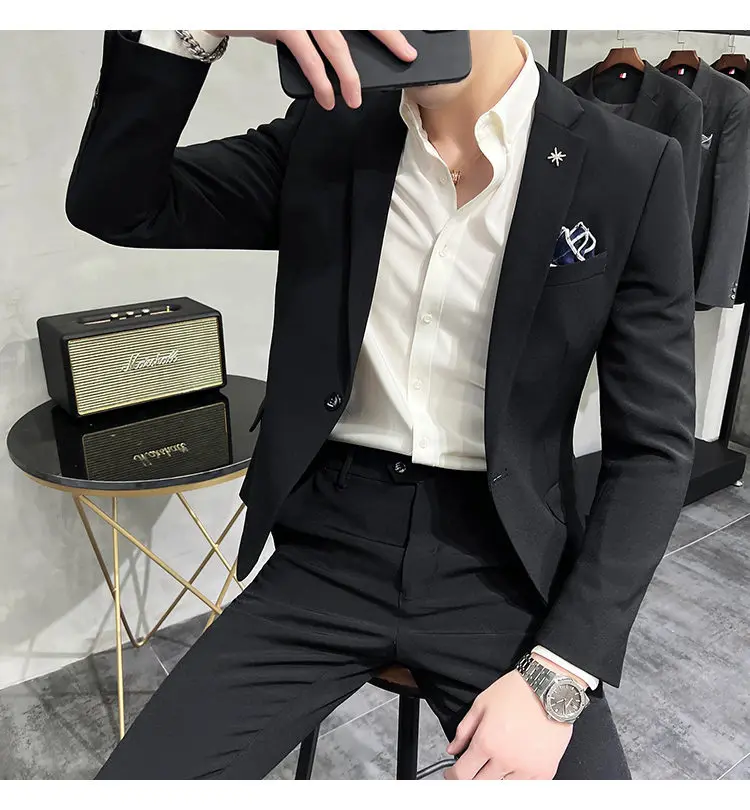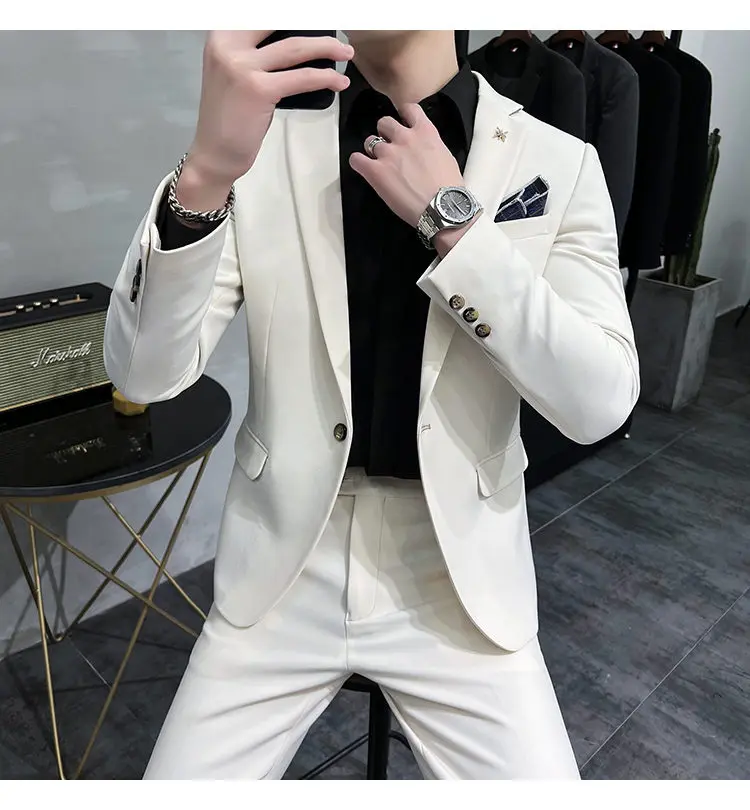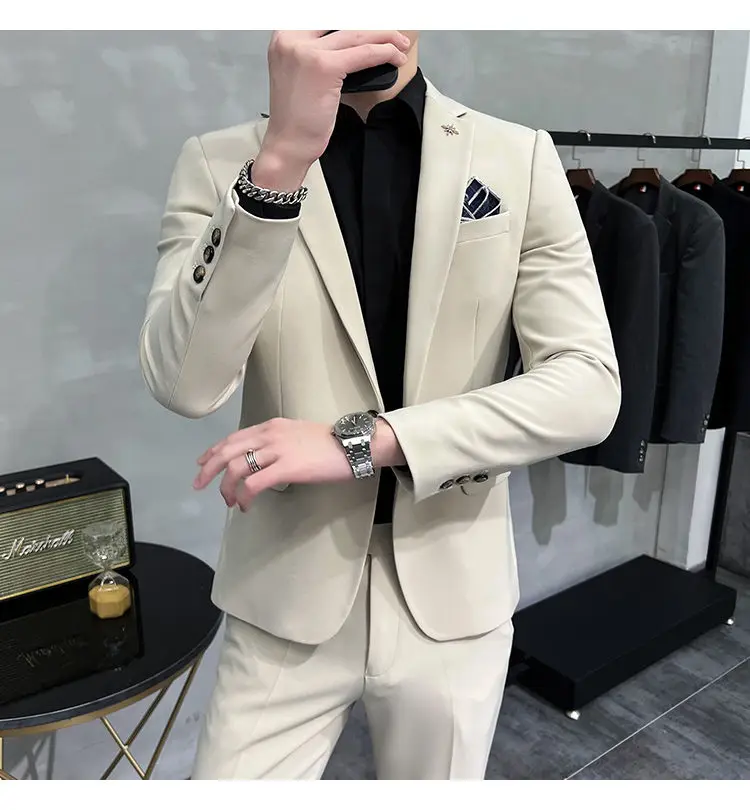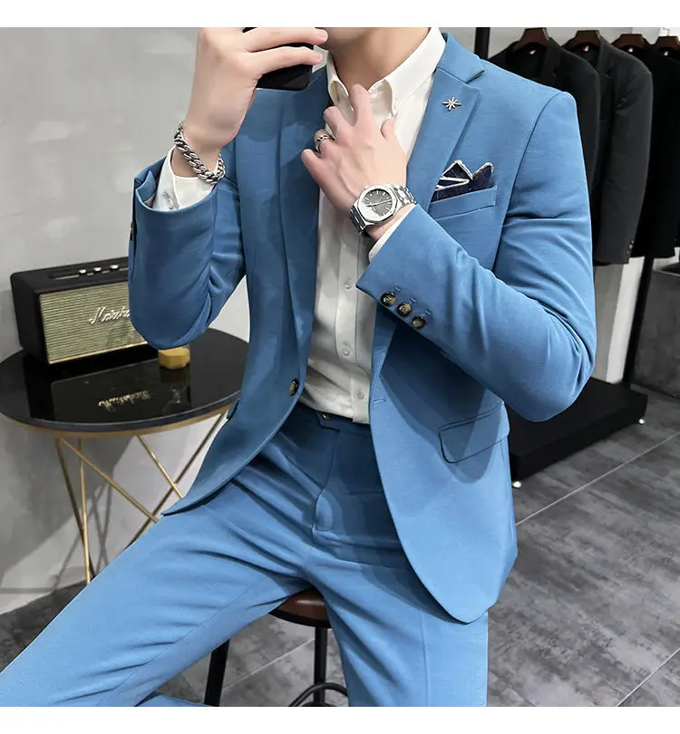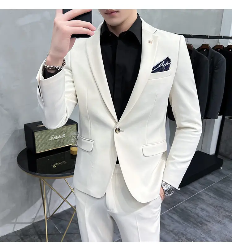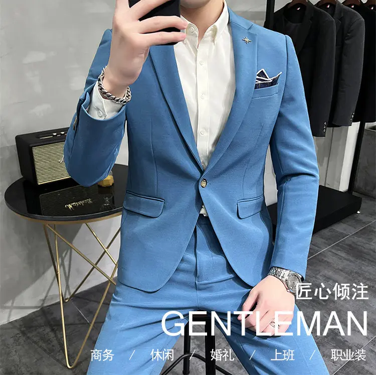 (Jackets+Pants) Men's Spring Quality Business Suits Male Slim Fit Solid Color Groom's Wedding Dress Fashion 2 pieces Blazers 4XL