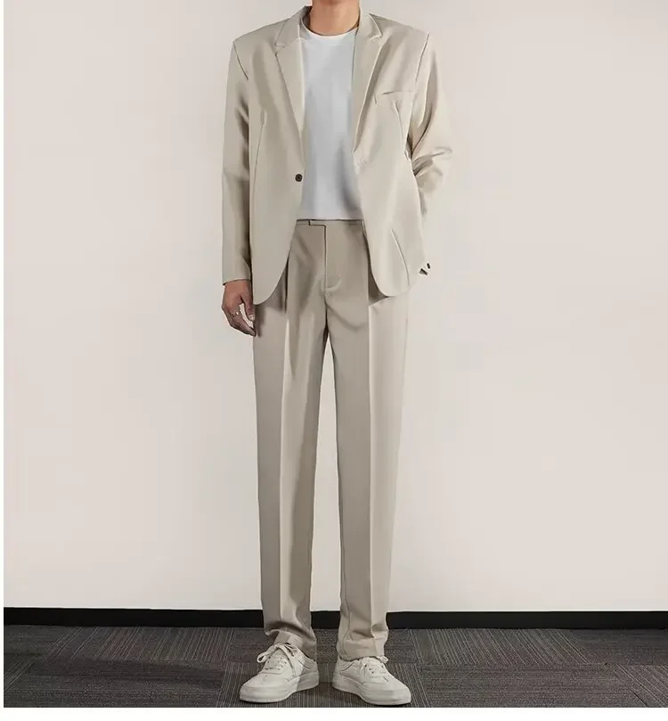 Casual Business Solid Color Western-style Clothes Suit For Men Trendy In Spring 2024 No Ironing Required Korean Style