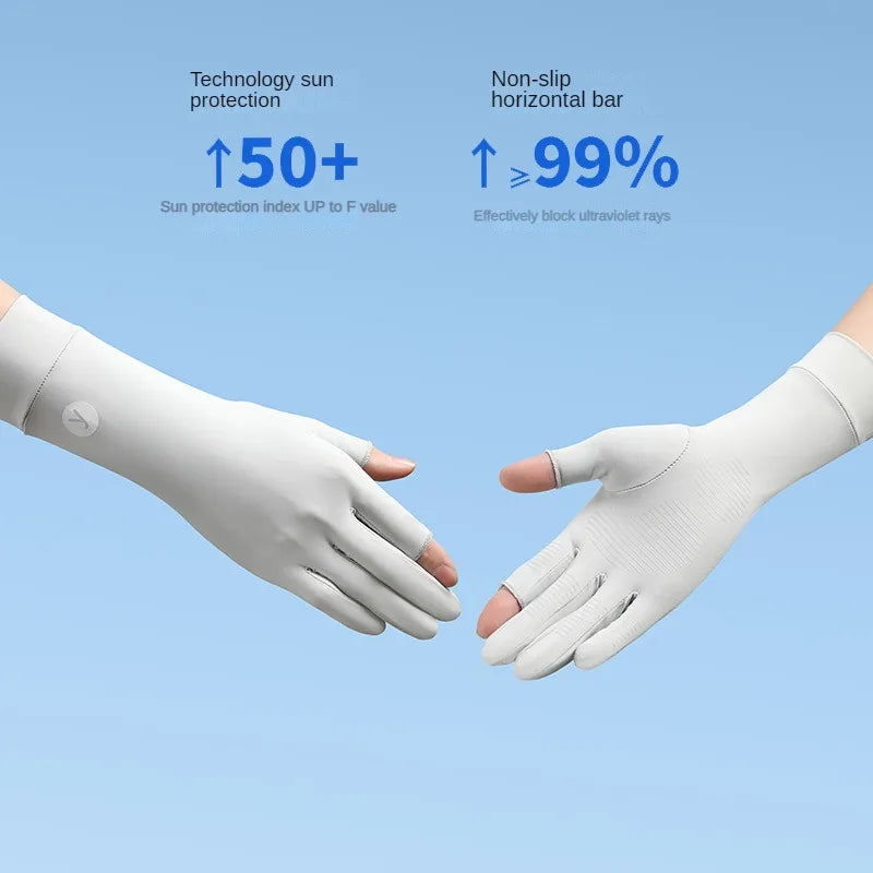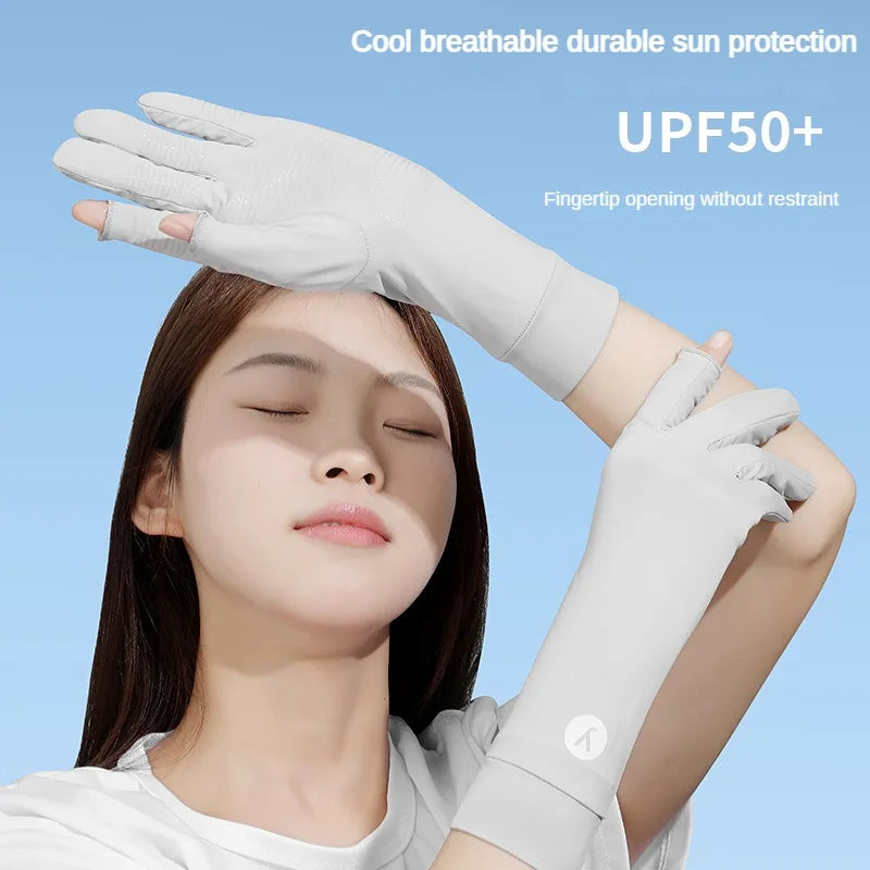 Spring Summer Mid-length Sports Ice Silk Cool Touch Screen Fingerless Riding Driving UV Protection Sun Protection Gloves Women