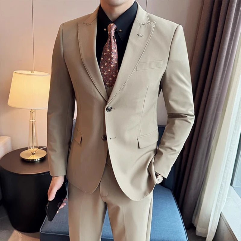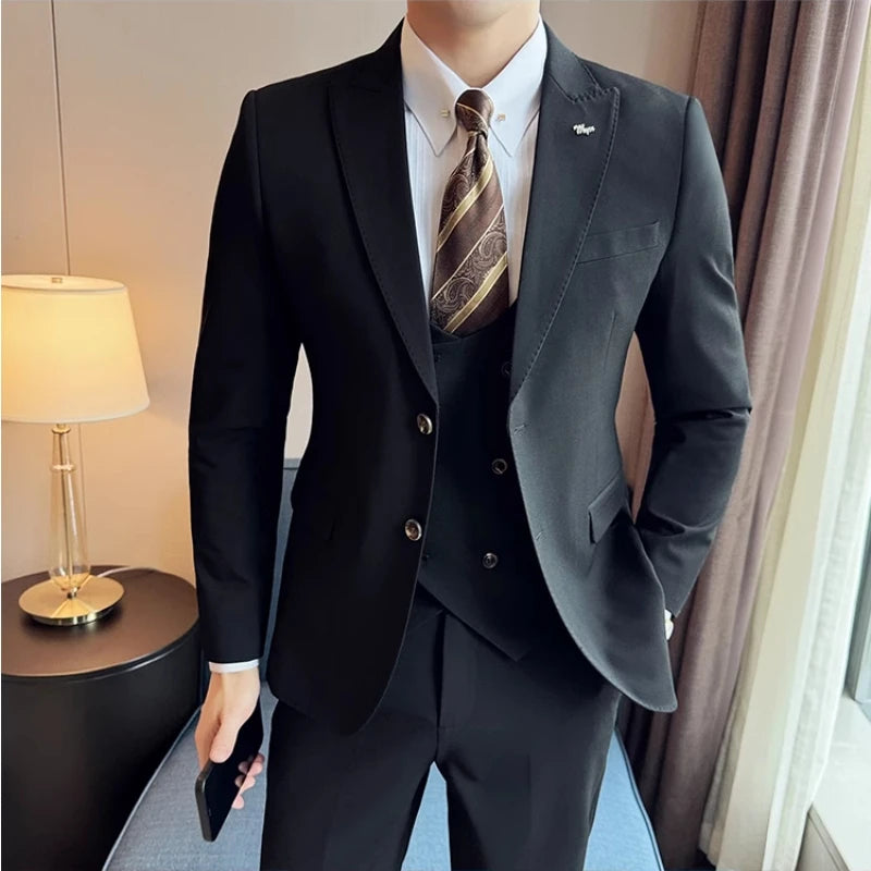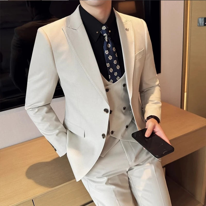 2024 Spring New Ins British Fashion Trend Slim-fit (suit + Vest + Trousers) High-end Boutique Business Three Suit Dress Coat