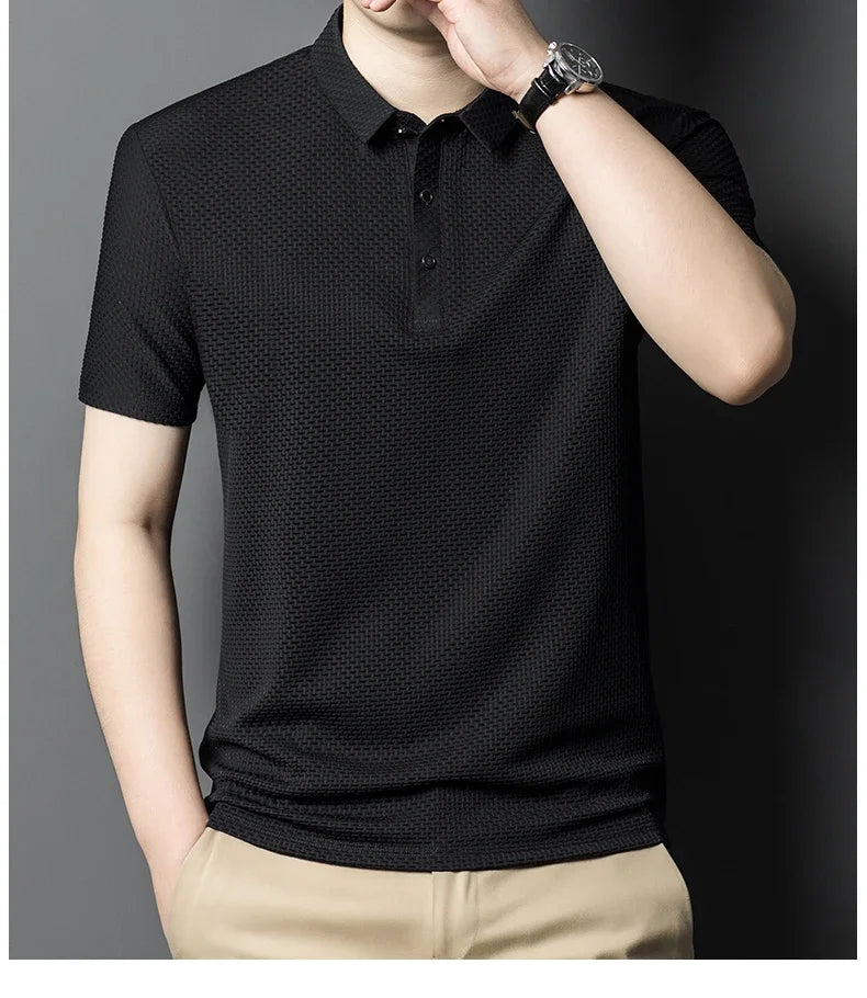 BROWON 2025 Casual Summer Graphic T Shirts for Man Top Tee Solid Color Short Sleeve Turn Down Collar Plaid Mens Designer Clothes