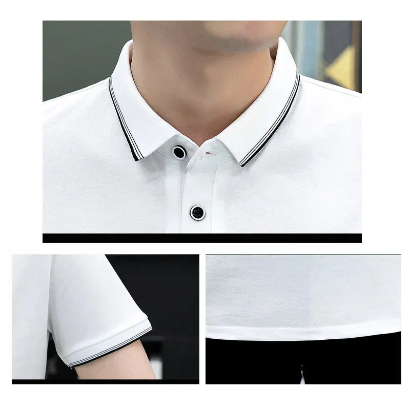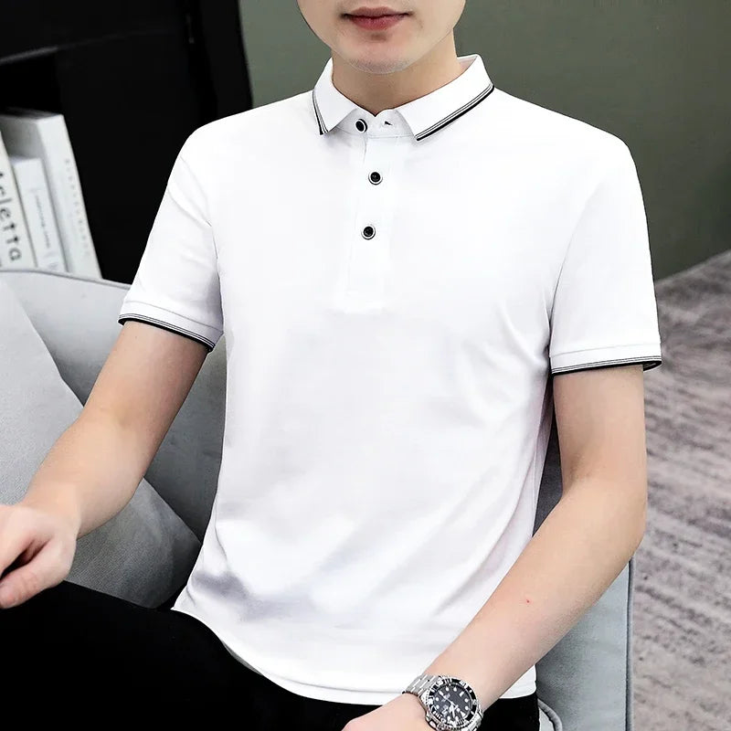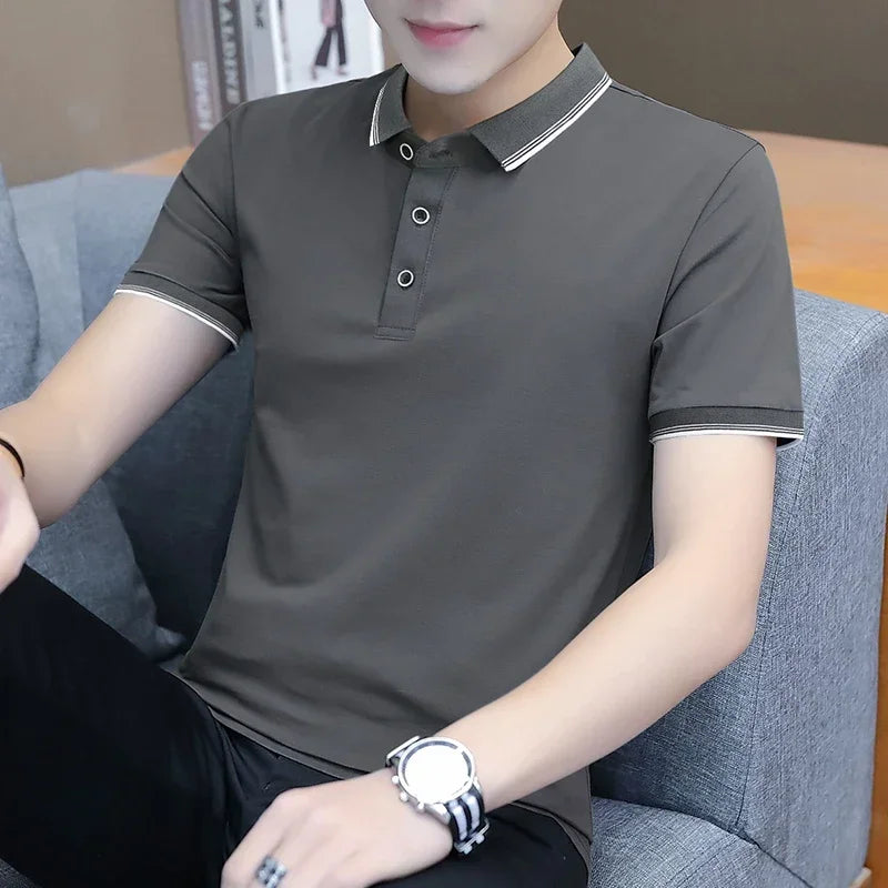 BROWON Brand Summer Men's T-shirts Solid Color Short Sleeve Slim Turn Down Collar Busienss Casual Cotton Tshirt for Men Clothes