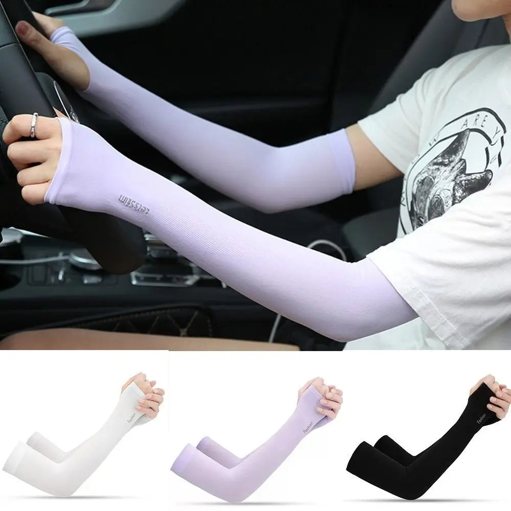 1Pair Cool Hand Sleeves Summer Ice Silk Long Sleeves Anti-Sunburn Arm Cover Women Men Cuff Anti-UV Cycling Arm Sleeve Fingerless