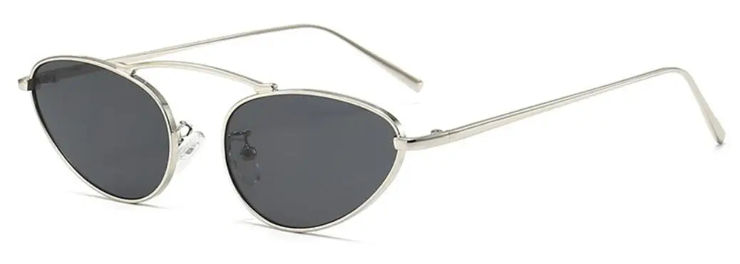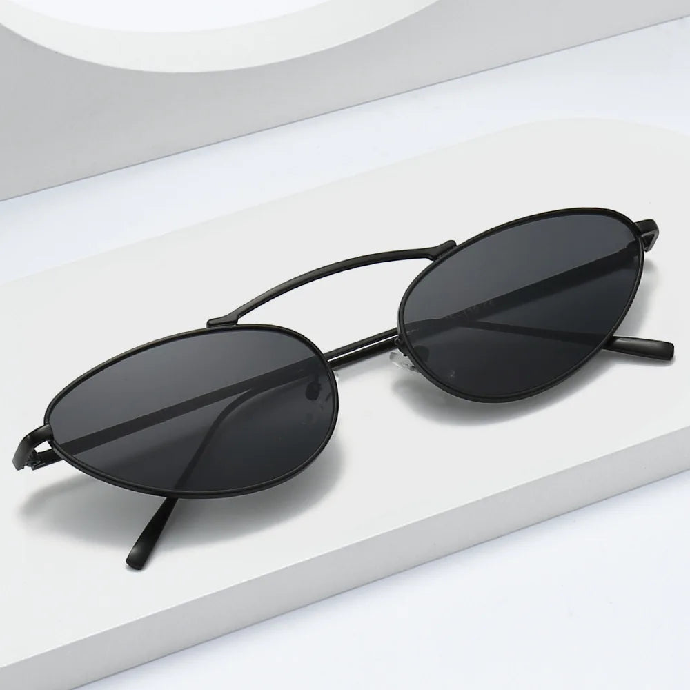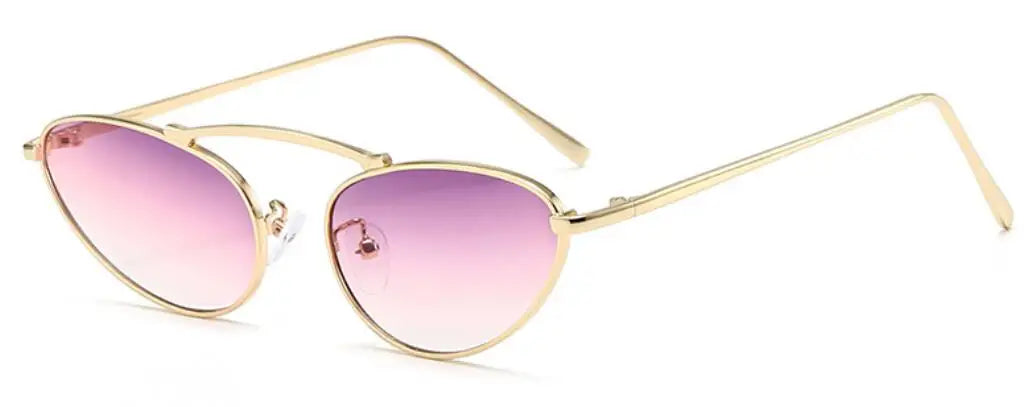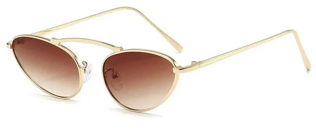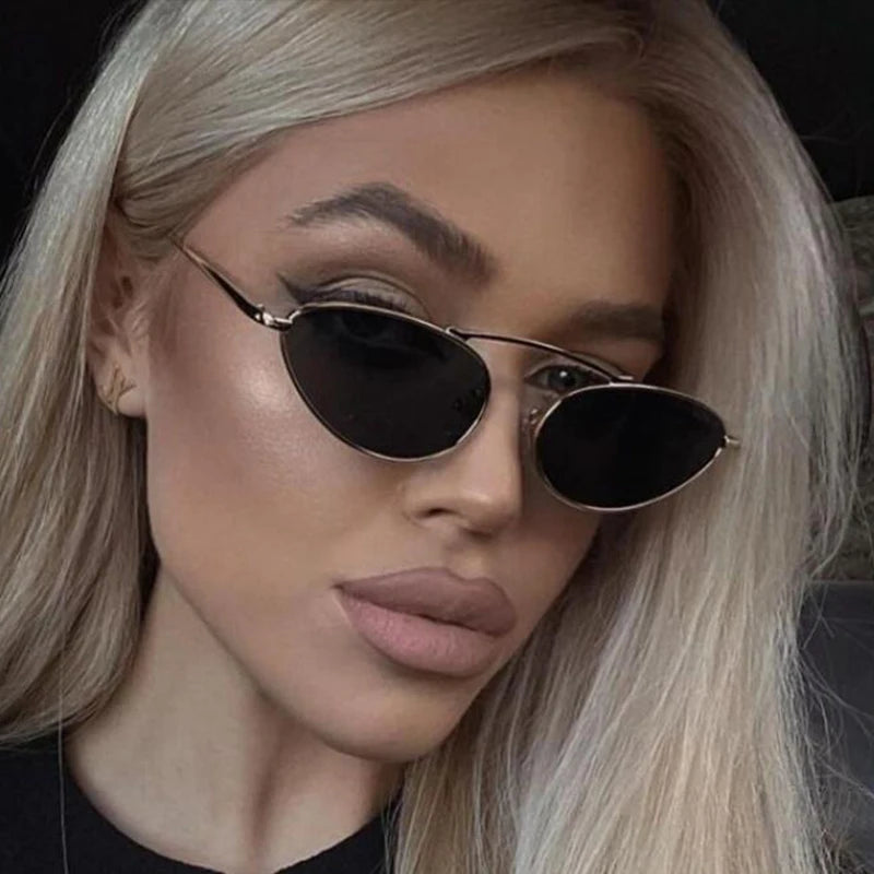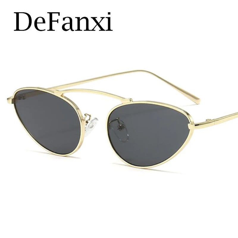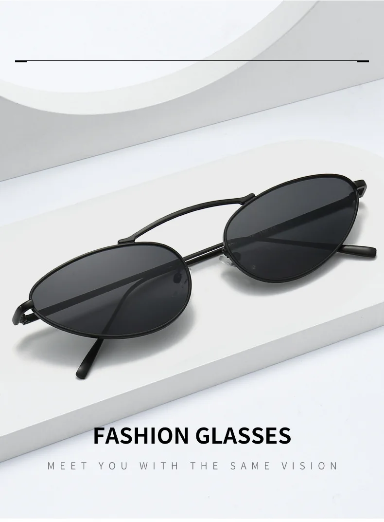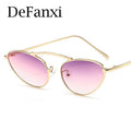 Luxury Brand Designer Cat Eye Sunglasses Women 2024 Popular Metal Frame Vintage Small Oval Sun Glasses UV400 Protect Black Lad