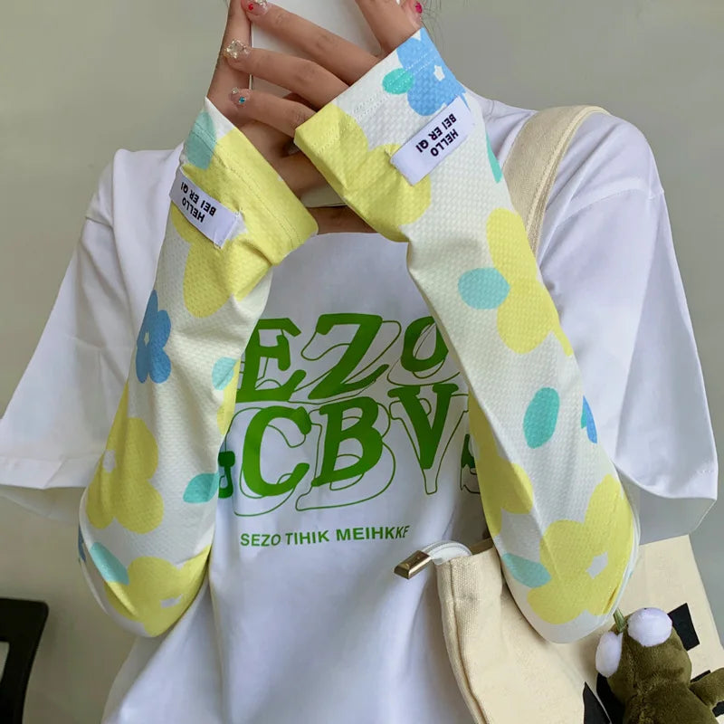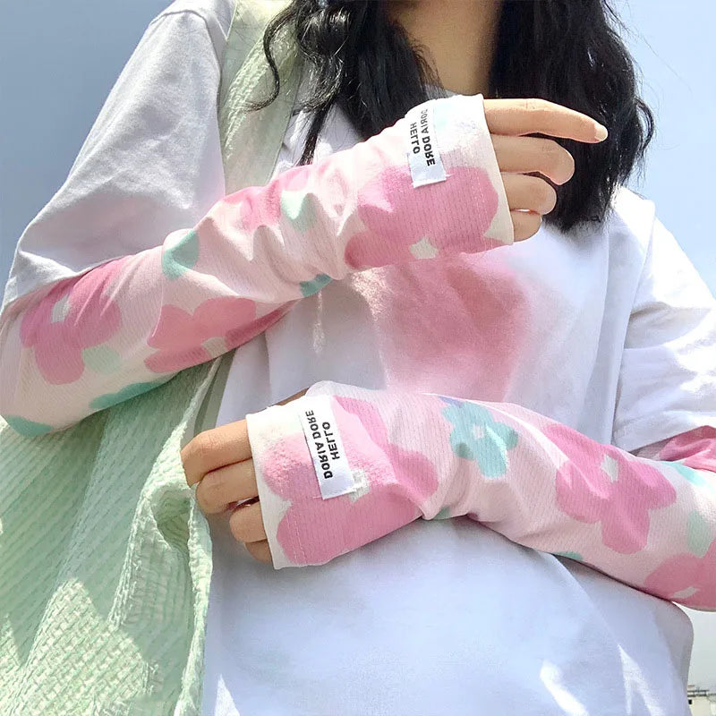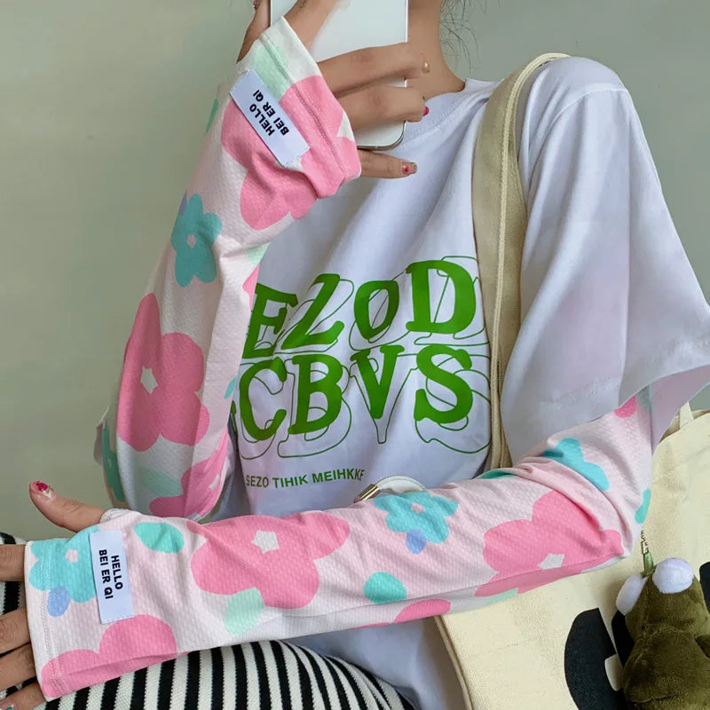 Korean INS Summer Ice Silk Anti-sunburn Sleeve Cover Women Sun Protection Arm Sleeves Protector Oversleeve Golf Basketball Cuffs