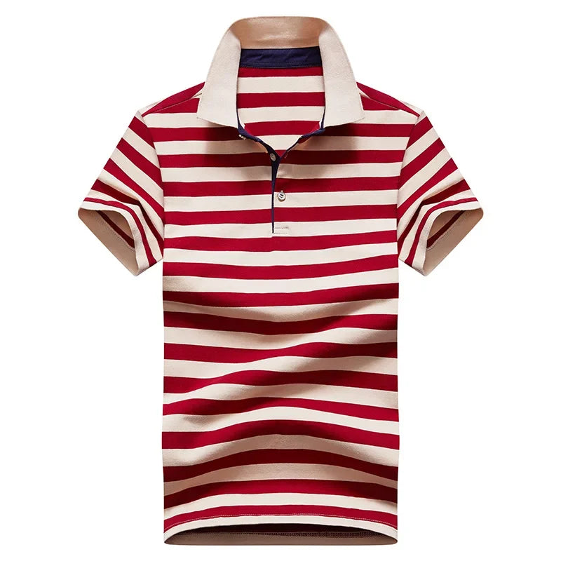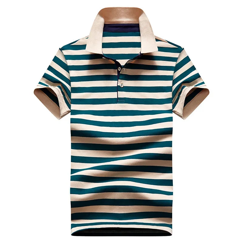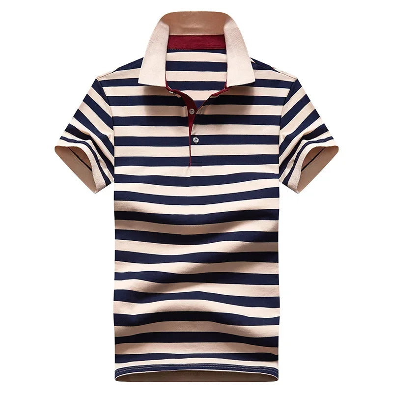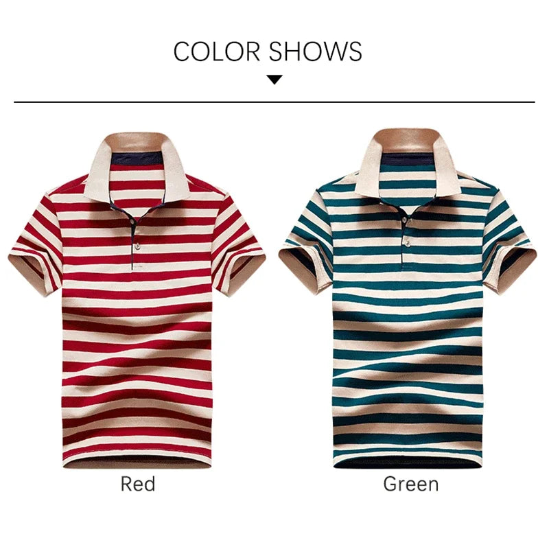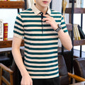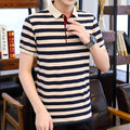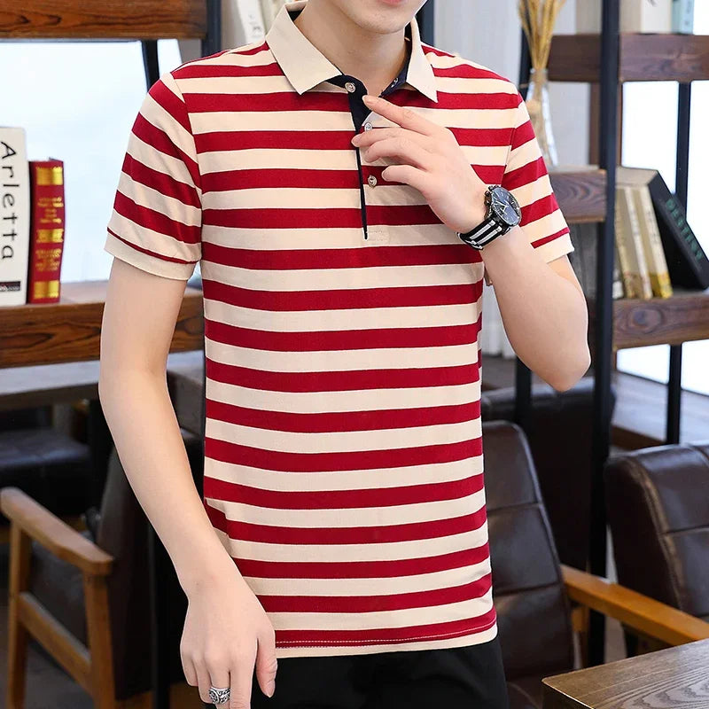 TFETTERS Brand Striped Short Sleeved T-shirt for Men Contrasting Colors Turn Down Collar Oversized T Shirt Men Fashion Tops