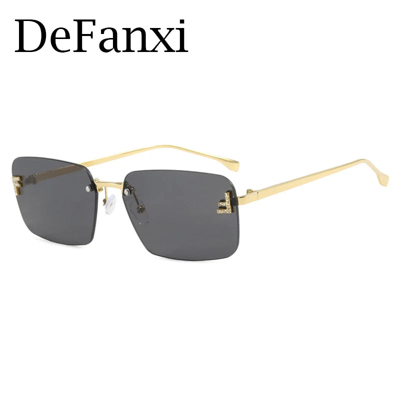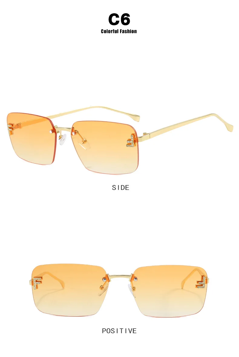 Luxury Fashion Diamond Sunglasses Brand Designer Letter Rimless Sun Glasses Candy Color Ocean Lens Small Square Sunglasses UV400