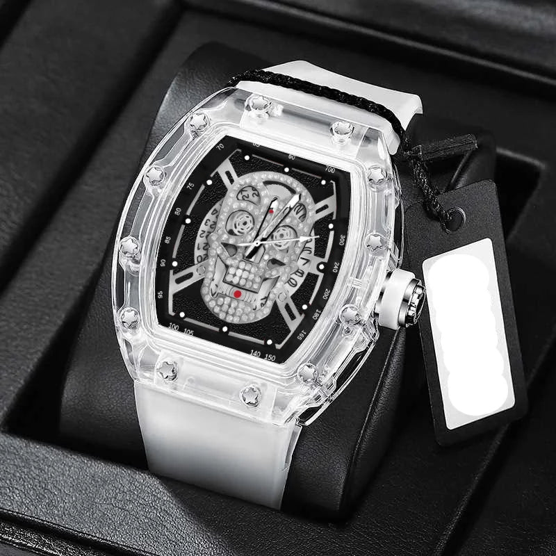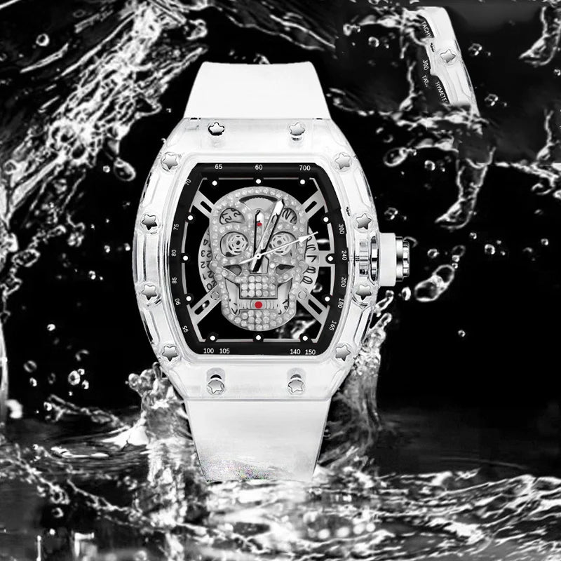 Luxury Quartz Men’s Wristwatch Male Watch for Man Watches Mechanical Trend Automatic Transparent Ghost Head Waterproof Skull