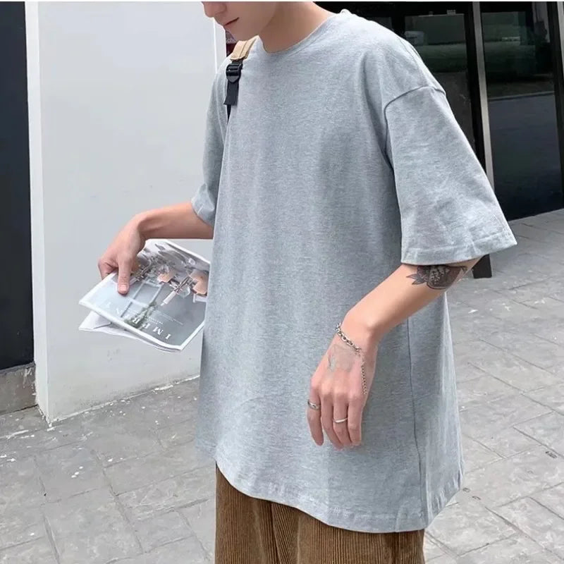 2022 Summer New Men's Short Sleeve Solid Color T-shirt Trendy Student Loose Fit Half Sleeve T-shirt
