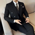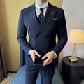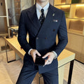 2024 High-quality Korean Version Slim (suit + Vest + Trousers) Stylish and Handsome Striped Double-breasted Suit Three-piece Set