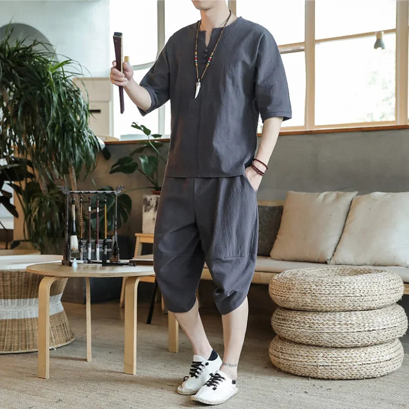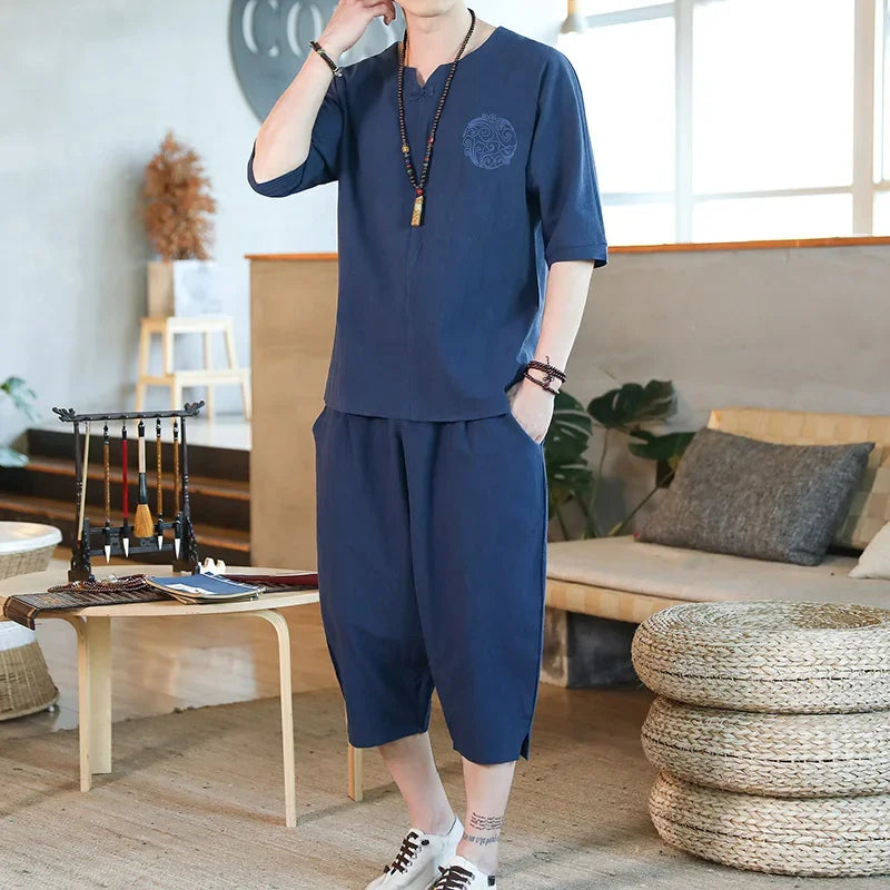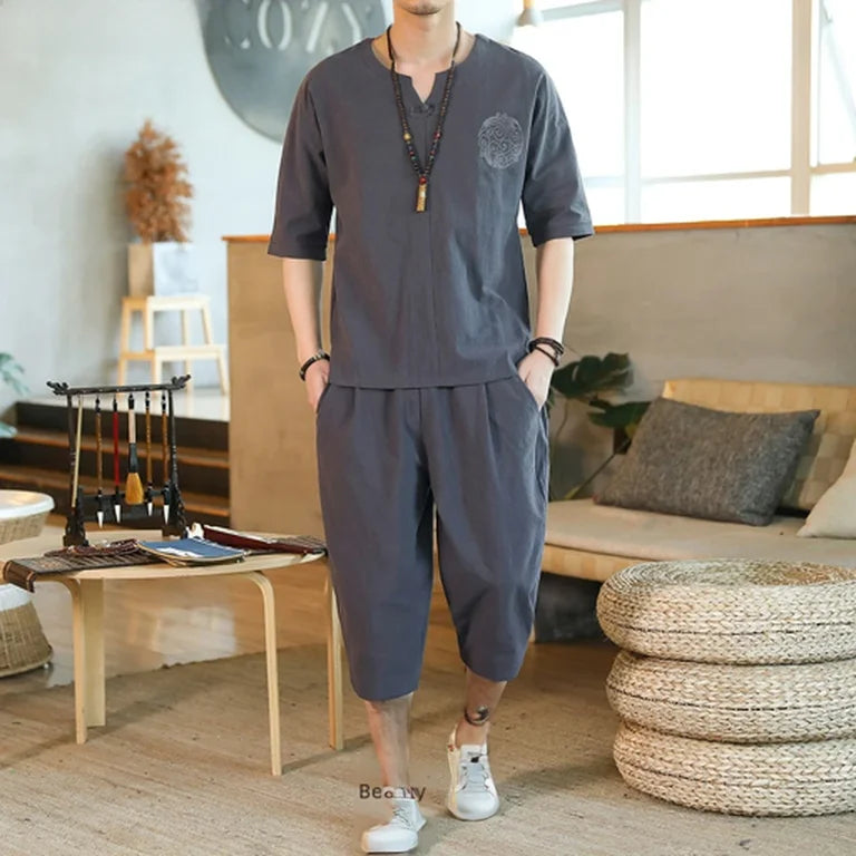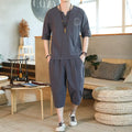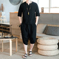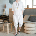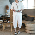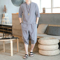 Men's Loose-fit Casual Pants Set Chinese Style Cotton Linen Short Sleeve Shirt Seven-point Shorts Two-piece Suit