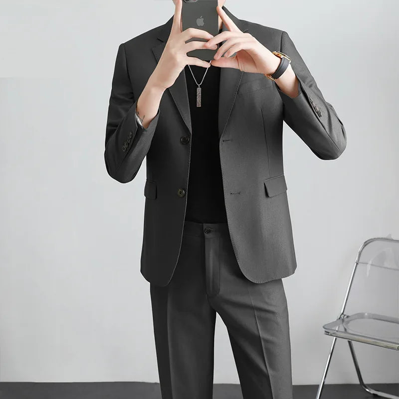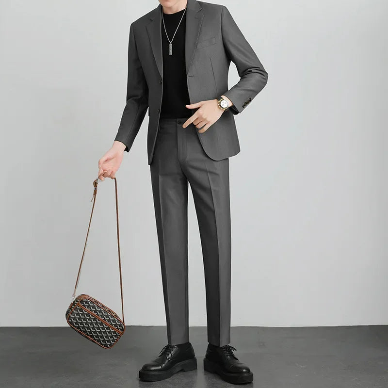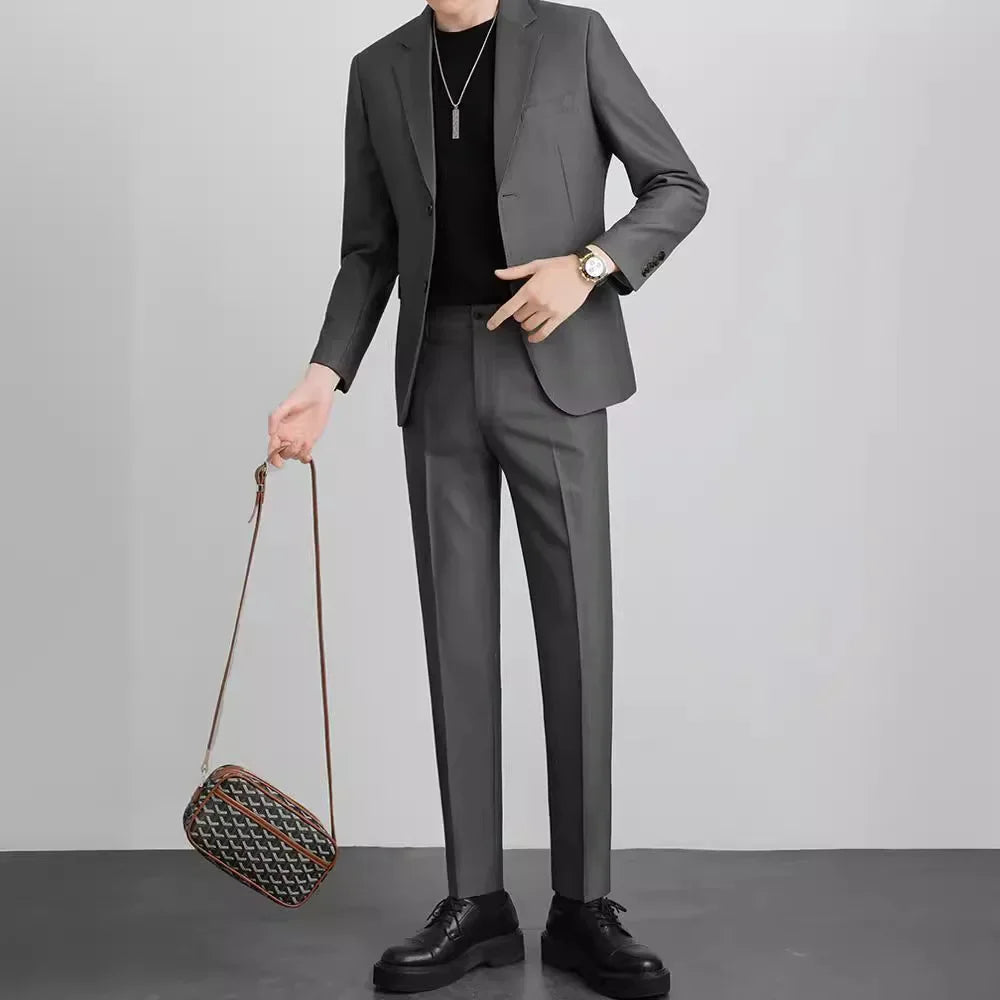 High-end Western-style Men's Suit Lightweight Korean Casual Slims Smooths Silhouette Jacket Spring Autumn Trendy Top Trousers